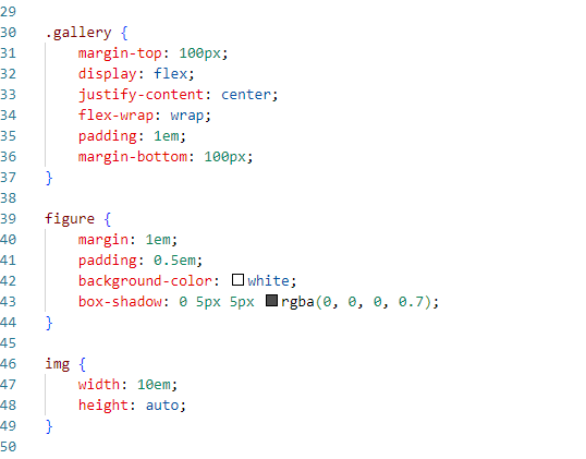 The gallery class will acts as a container for aligning and styling all images consistently.