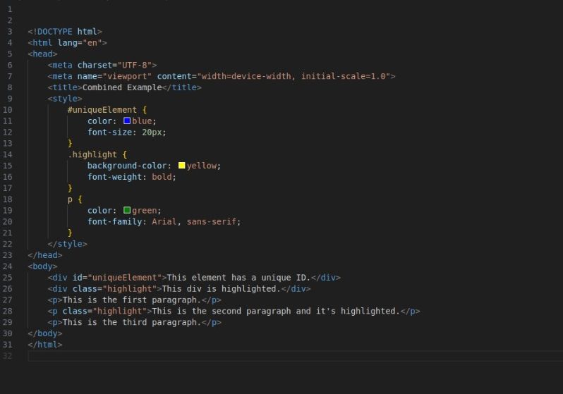 Here is an overall example of ID, element, and class.