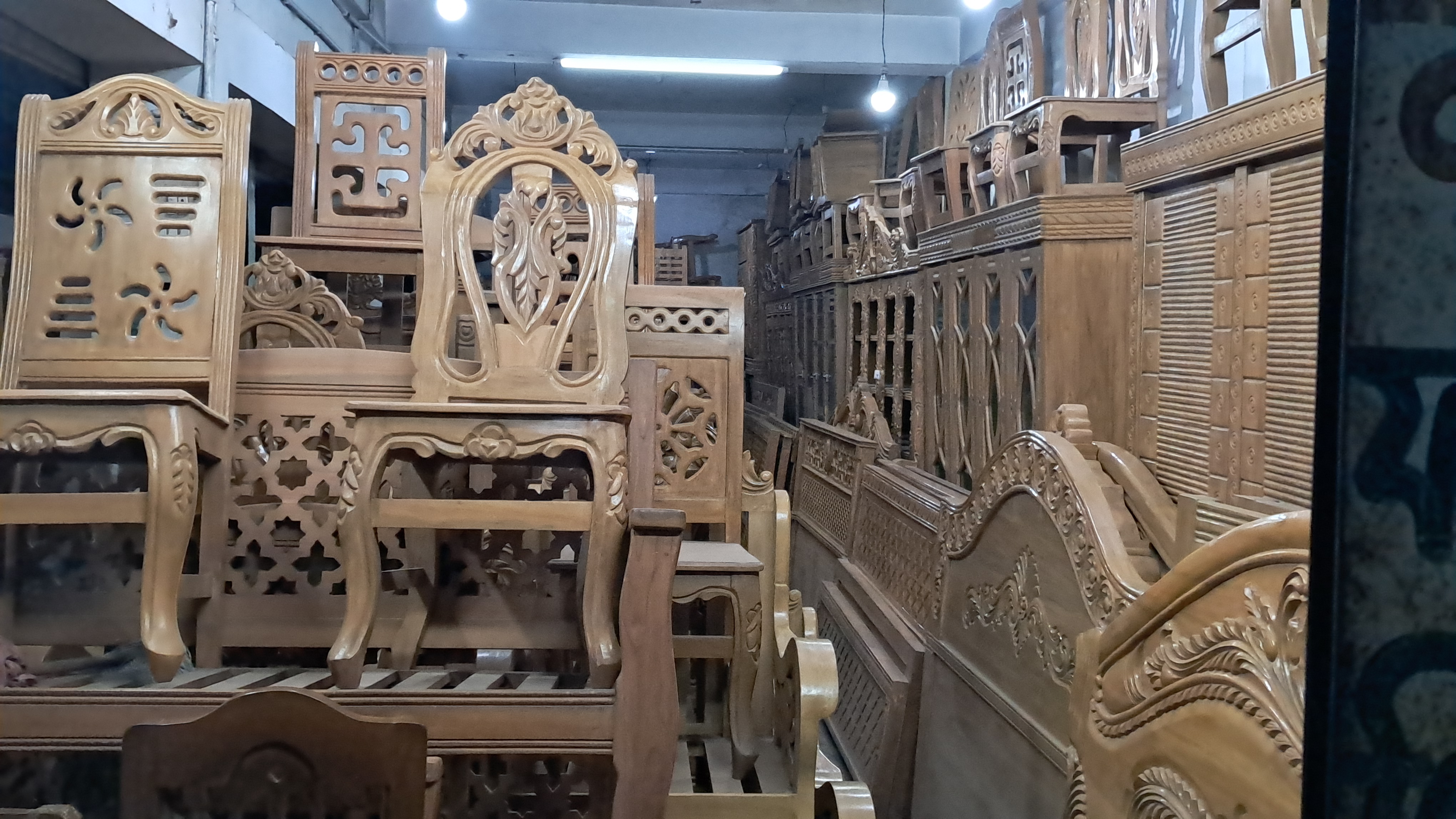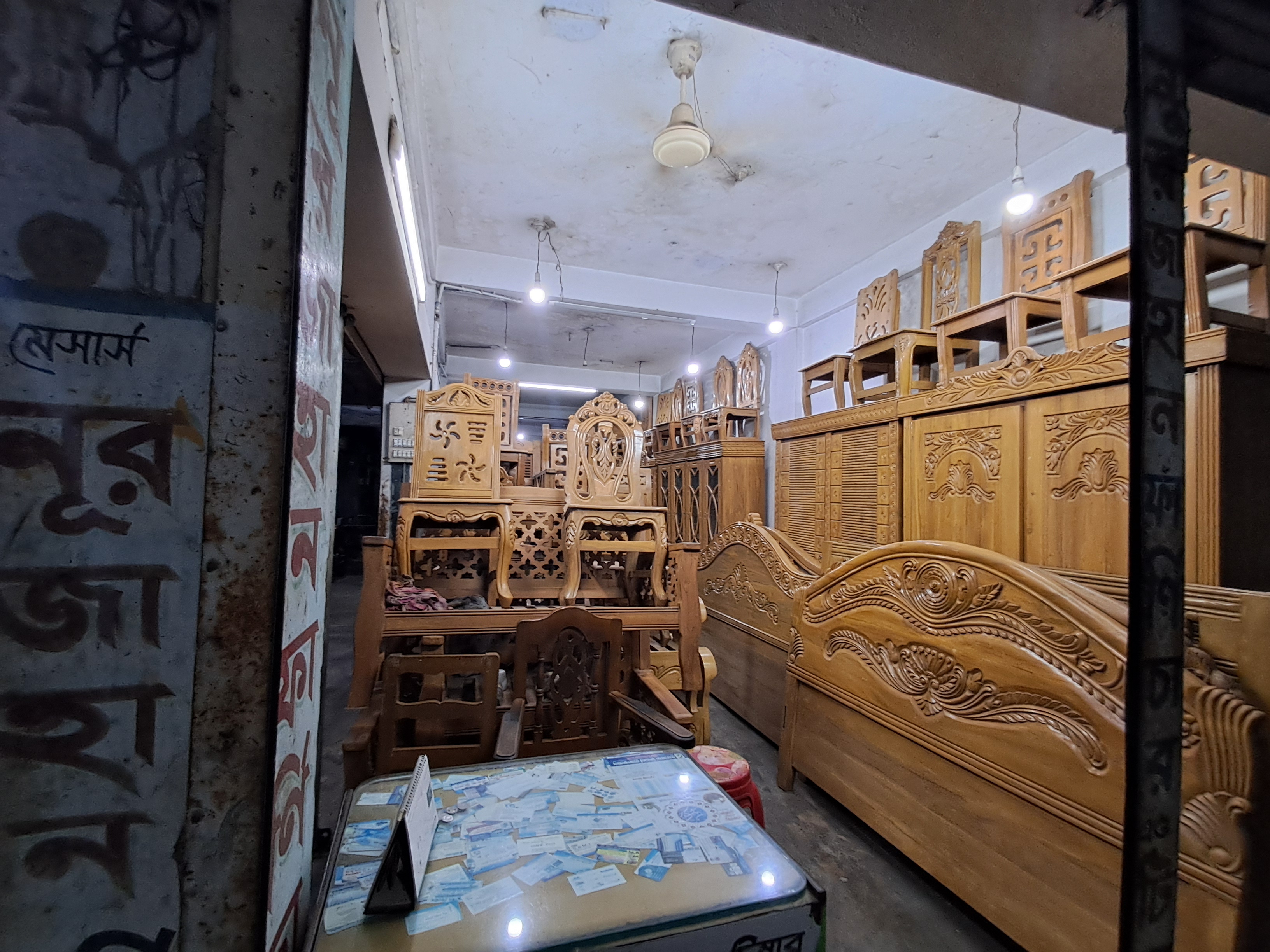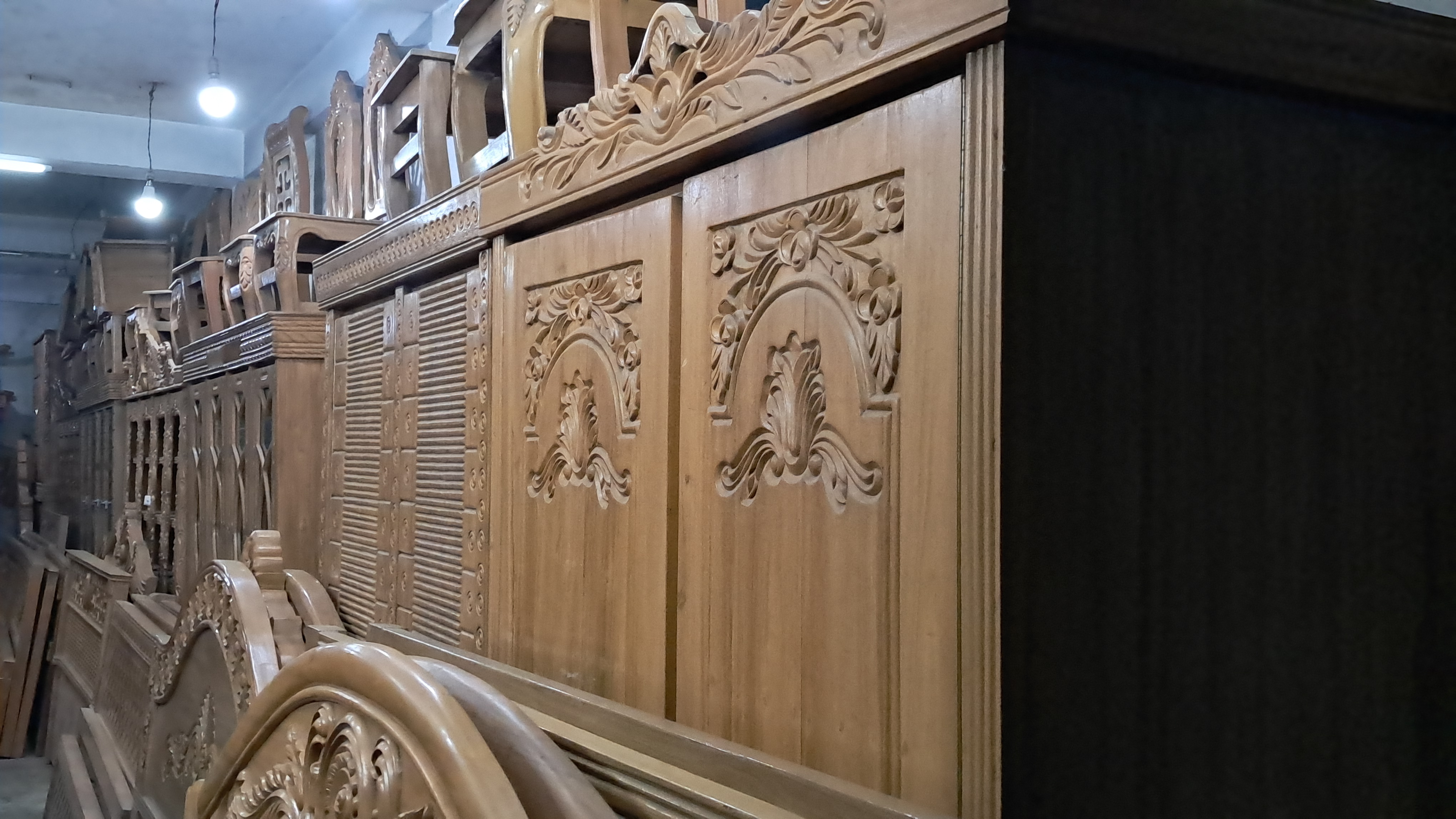 They collect different types of good trees here and make different types of furniture from these trees. They make furniture according to their choice and sell them. Apart from this, they also make furniture by customization. The woods they use here are teak, garjan, gamari, akashi, these different types of trees they use to make different furniture. When the customer chooses a design, they make this thing in the same way.