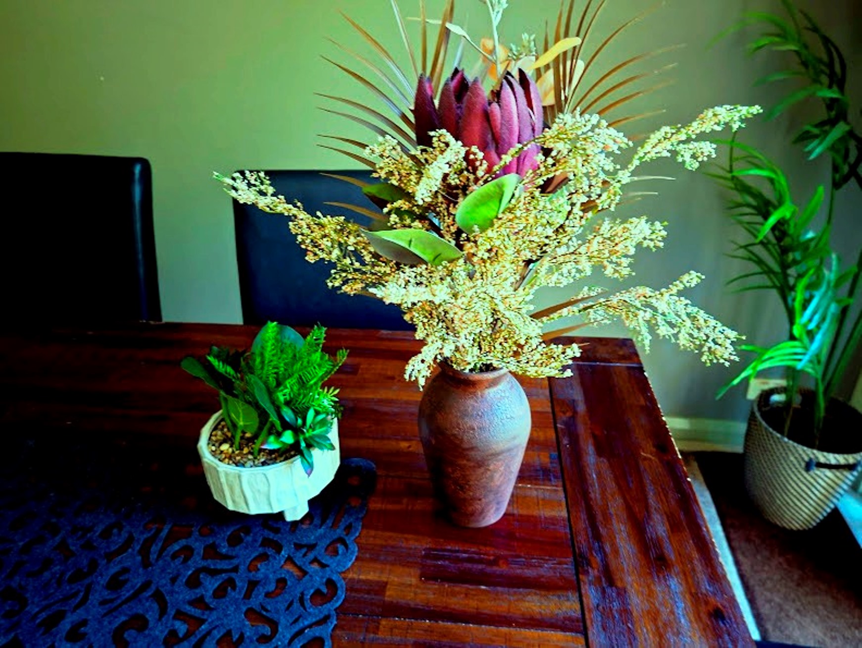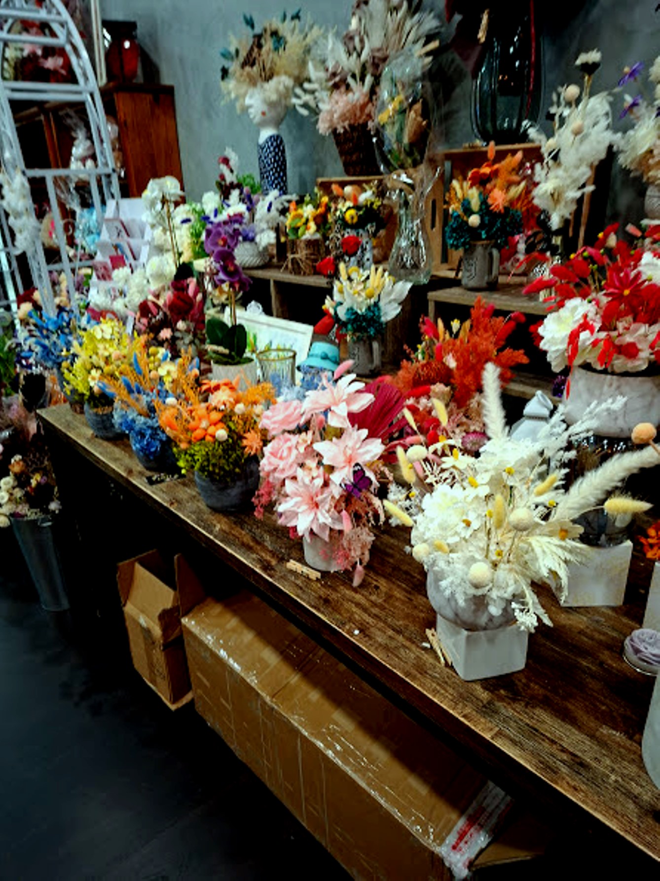 She has long-lasting dried flower displays, so I can show you a sample because fresh flowers are always for gifts and can't be stored for long time.