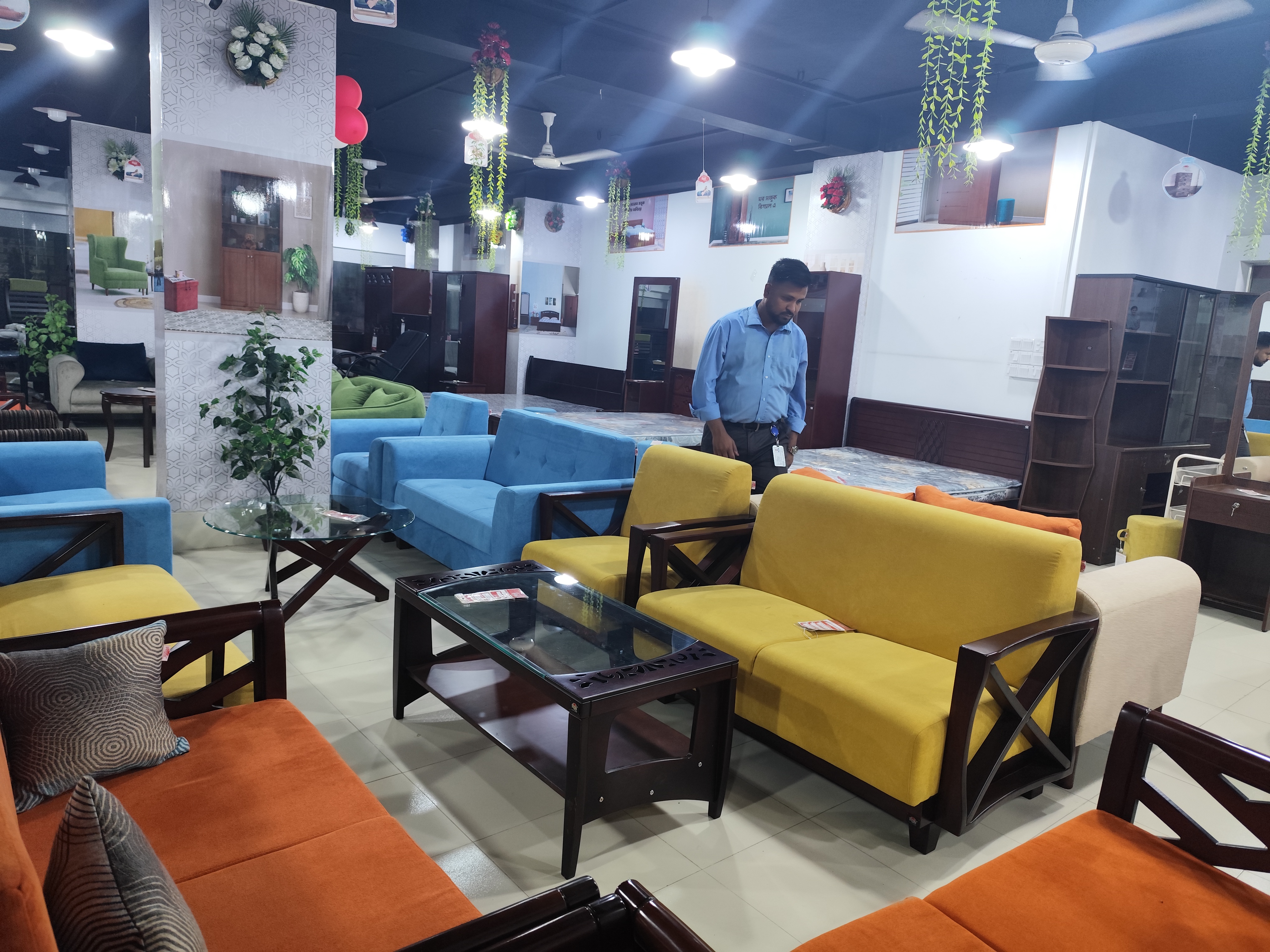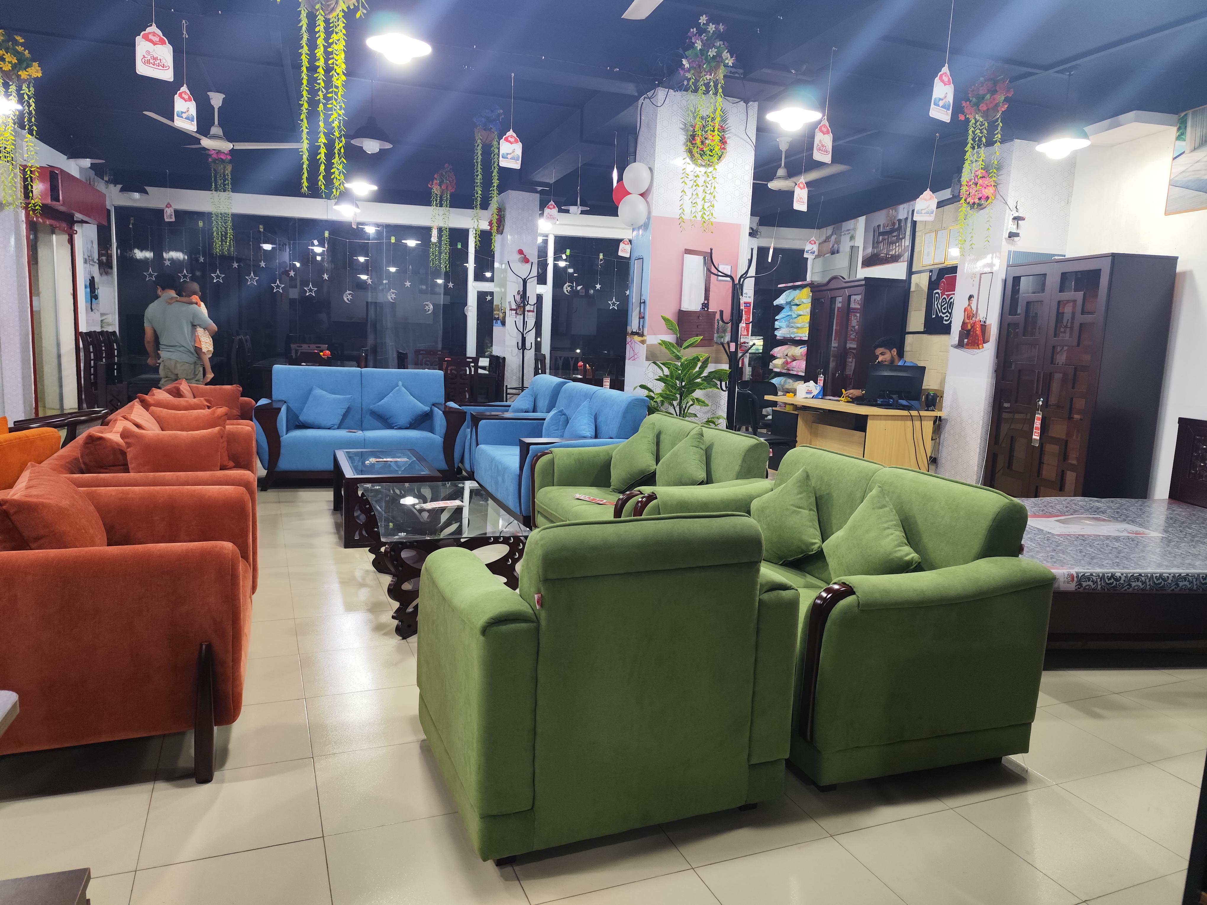 Regal Emporium Furniture Shop is open from 10 am to 10 pm. The interior of Regal Furniture Outlet is decorated with modern decor, which attracts the attention of customers. The showroom has adequate lighting and air conditioning, which provides a comfortable environment for customers to shop. The furniture outlet is monitored by CCTV cameras round the clock, customers feel comfortable shopping in this store.