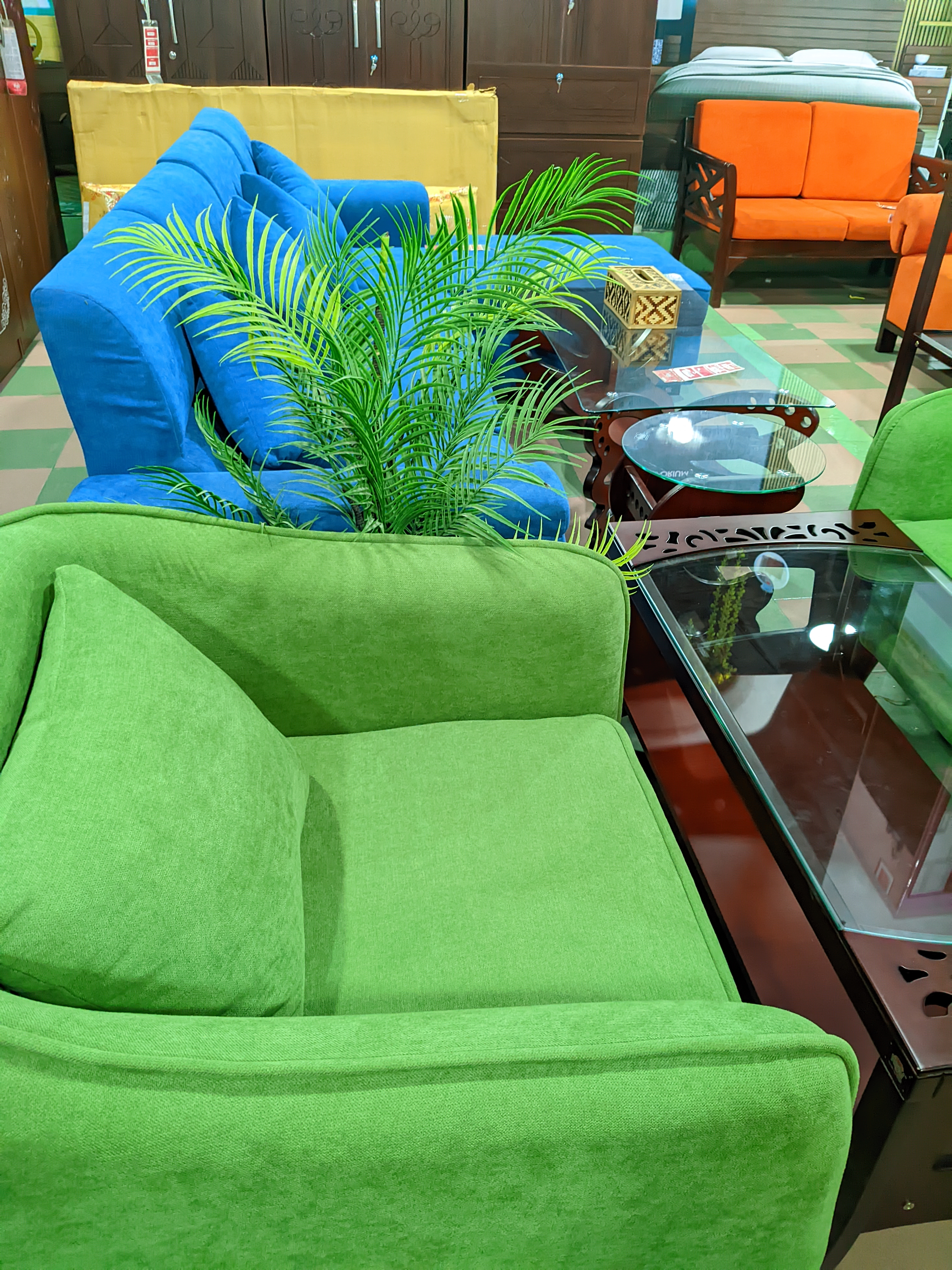 The best part of the store is the variety of its products. Here, I got to see almost all types of furniture needed for the home, including sofa sets, dining tables, beds, cupboards, wardrobes, and bookshelves. Each product seemed to be very well designed and of good quality. The woodwork was sturdy, and the finishing was very good. I especially liked the design and color combination of the sofas. We walked around the entire outlet and looked at the furniture.