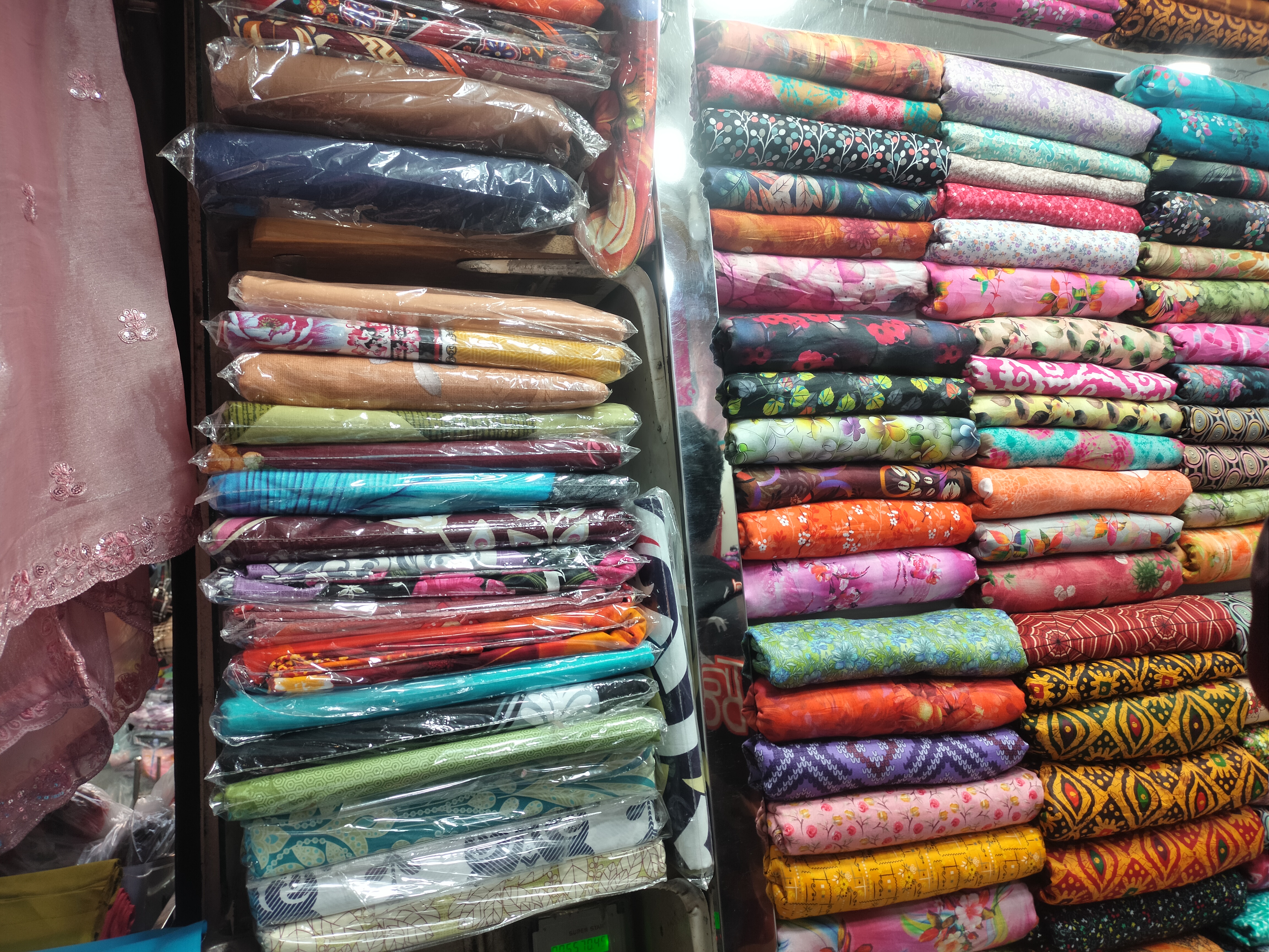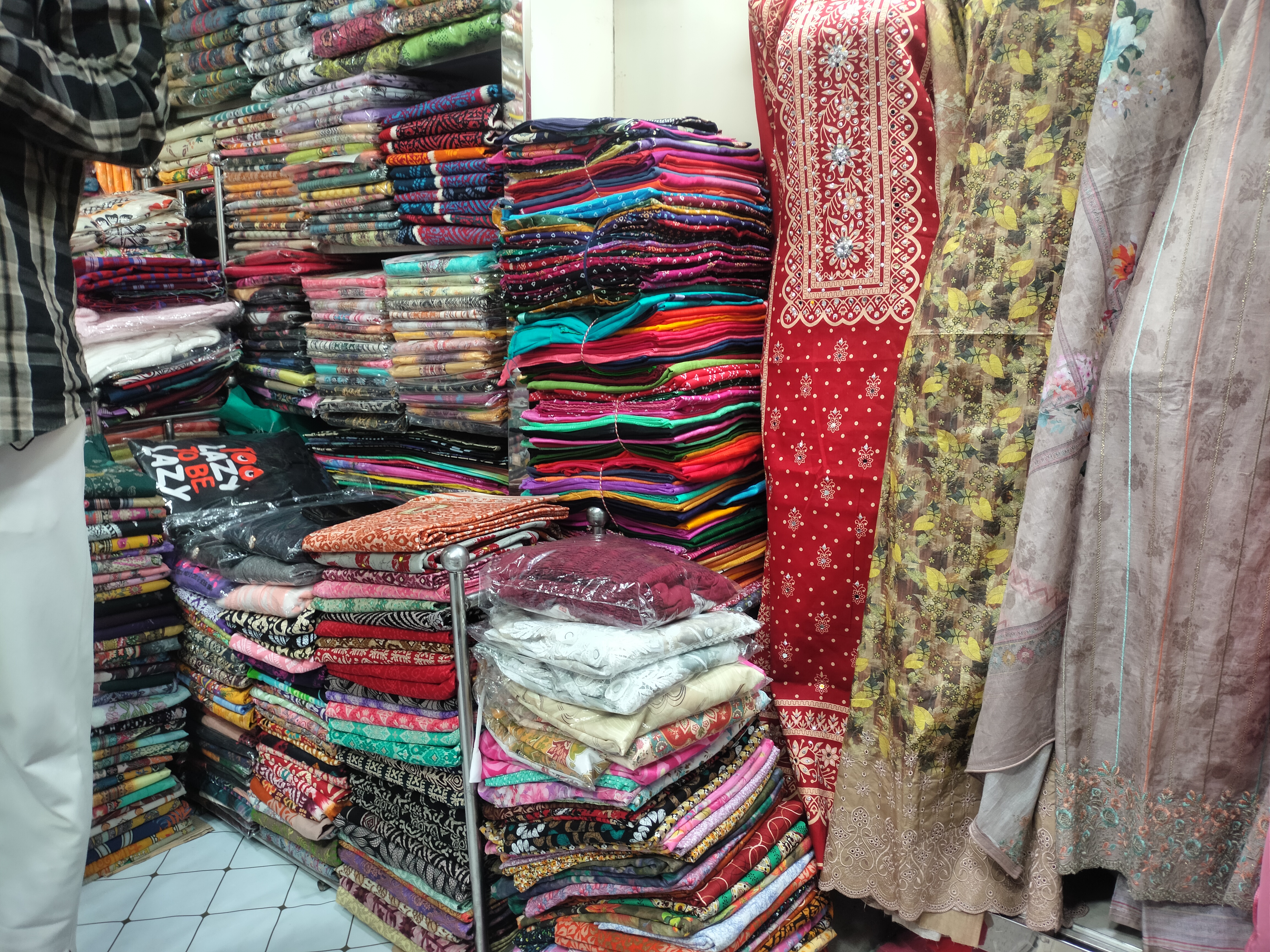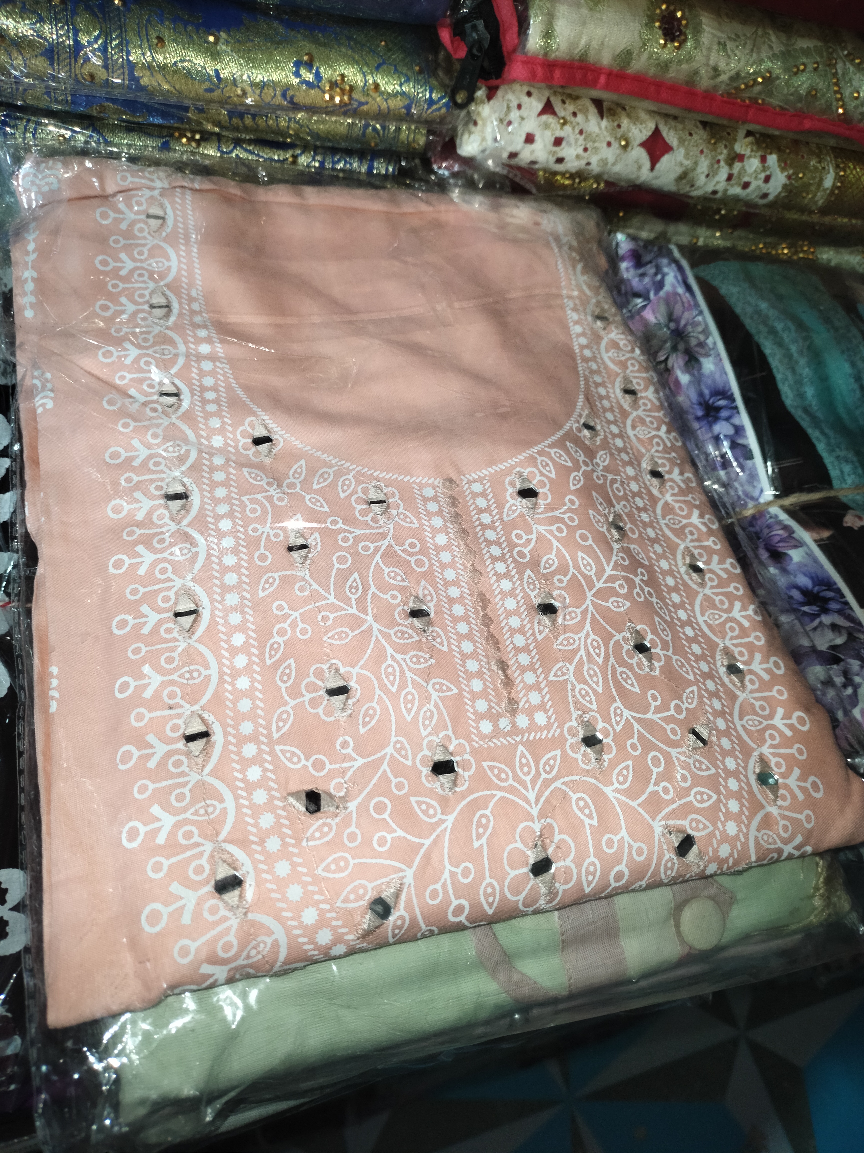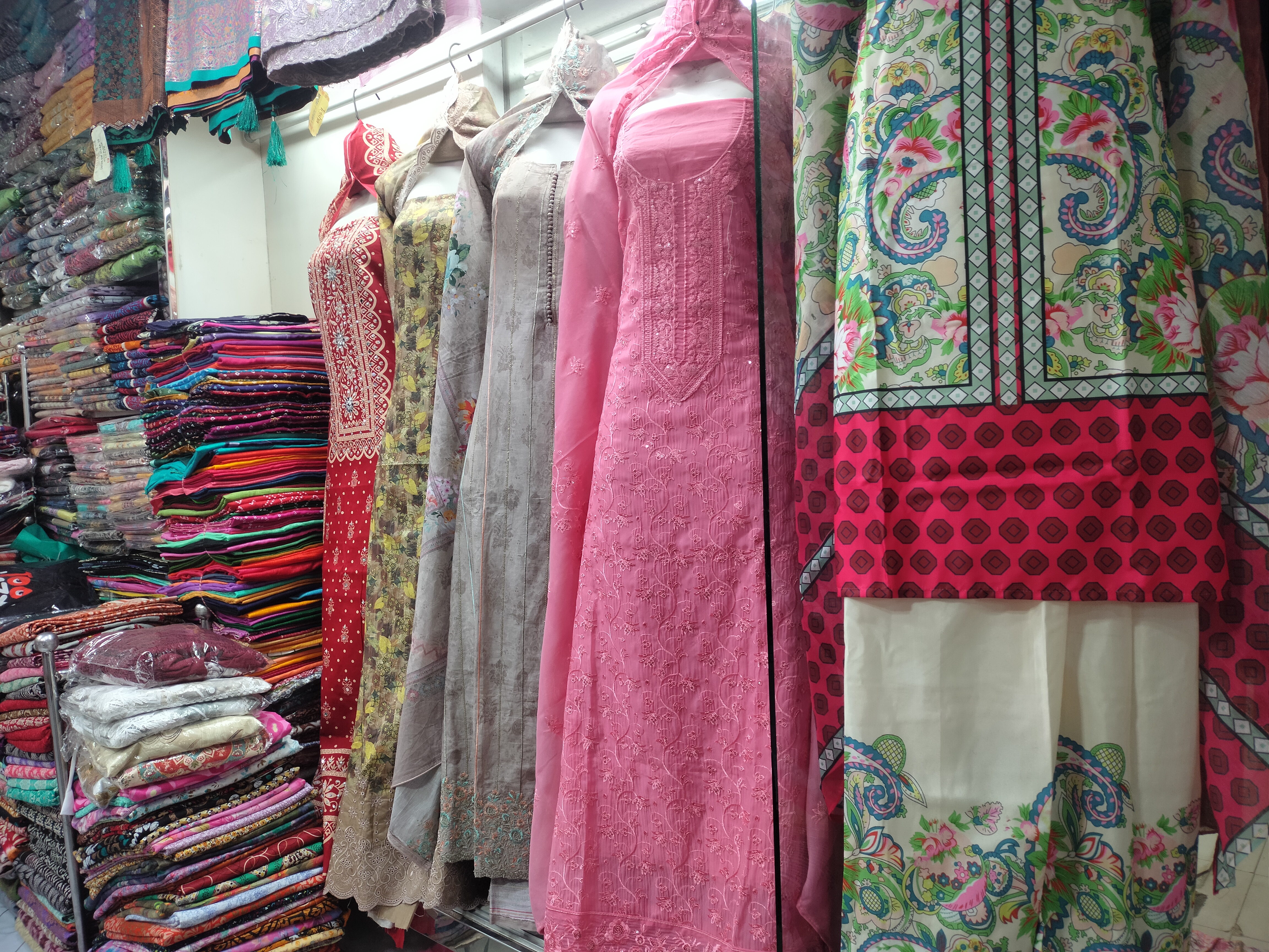This is a clothing store. Where girls' clothes are sold. Here girls' three-pieces, sarees, veils, towels, designer dresses and various types of clothes are sold. And every piece of clothing here is very beautiful, which can be understood by looking at it. There are several dolls outside, which are wearing very beautiful three-pieces. Here you will also get normal three-piece clothes. You will also get cotton fabrics for sewing clothes, pajamas, blouses, petticoats. Here you will get all kinds of clothes very easily.