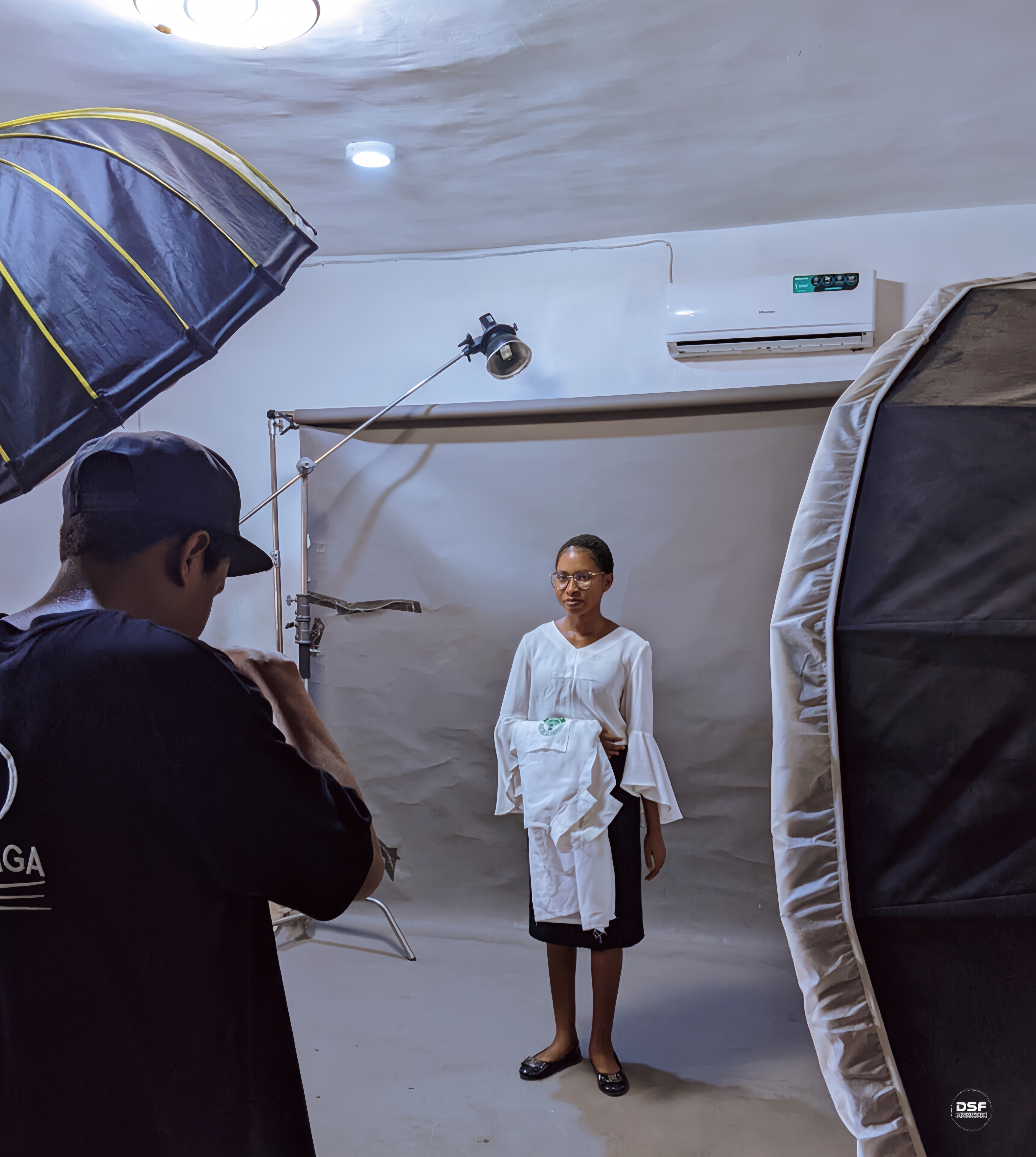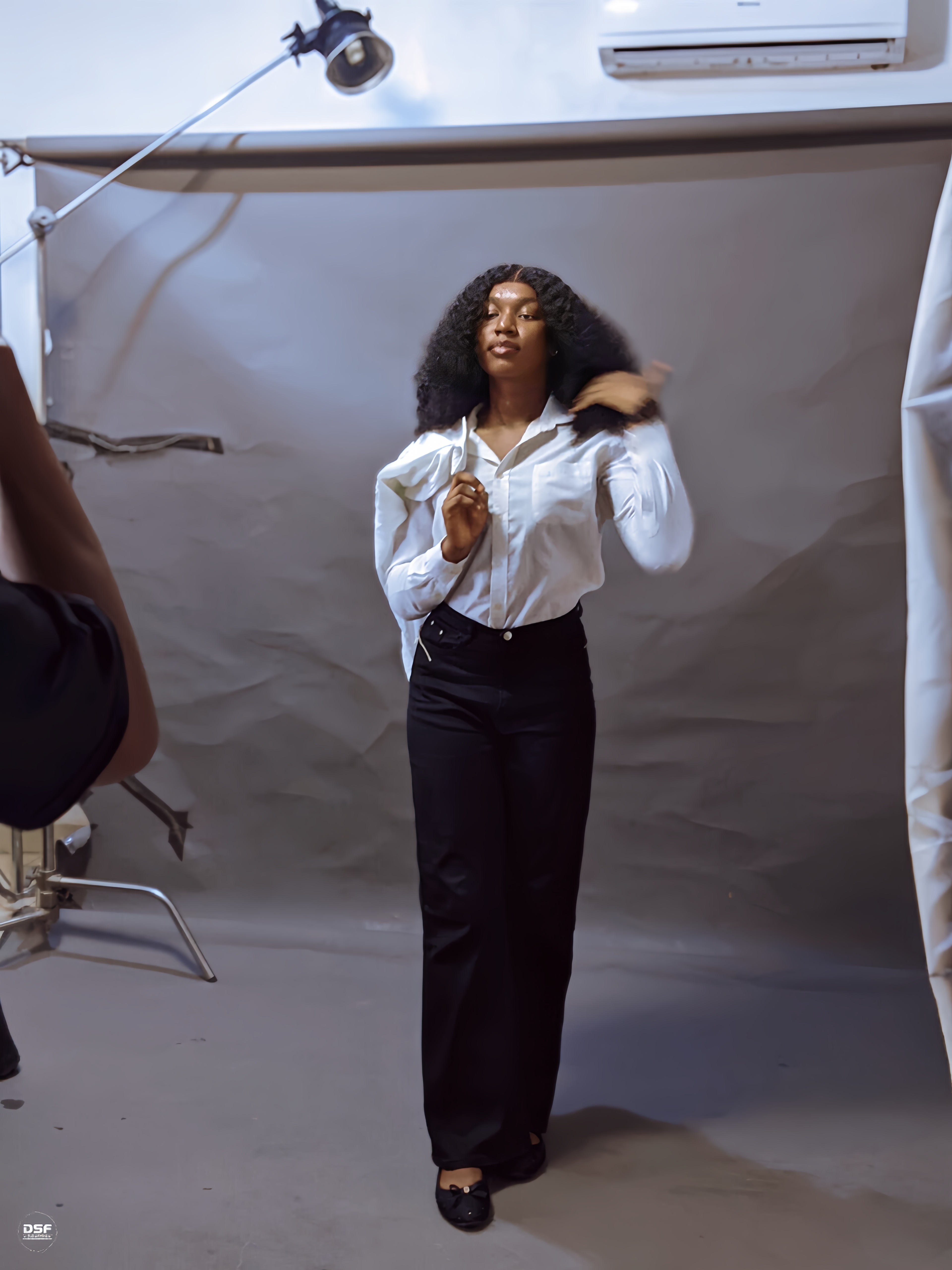 Getting to the studio felt like stepping into a different space entirely, calm but active at the same time, you could tell work was going on but in a smooth way, not noisy or scattered, everything had its place, lights already set, background ready, that kind of environment that just puts you in the right mood instantly, I took a moment to settle in, adjust myself, and just feel comfortable because that matters a lot before any shoot starts.