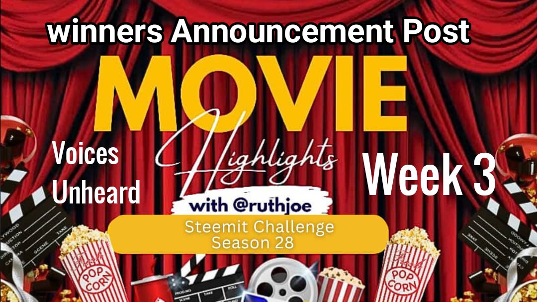 We have finally come to the end of week 3 movie Highlights season 28 of steemit challenge. The title for week 3 was "Voices unheard". It was indeed a successful week for both the participants and myself.