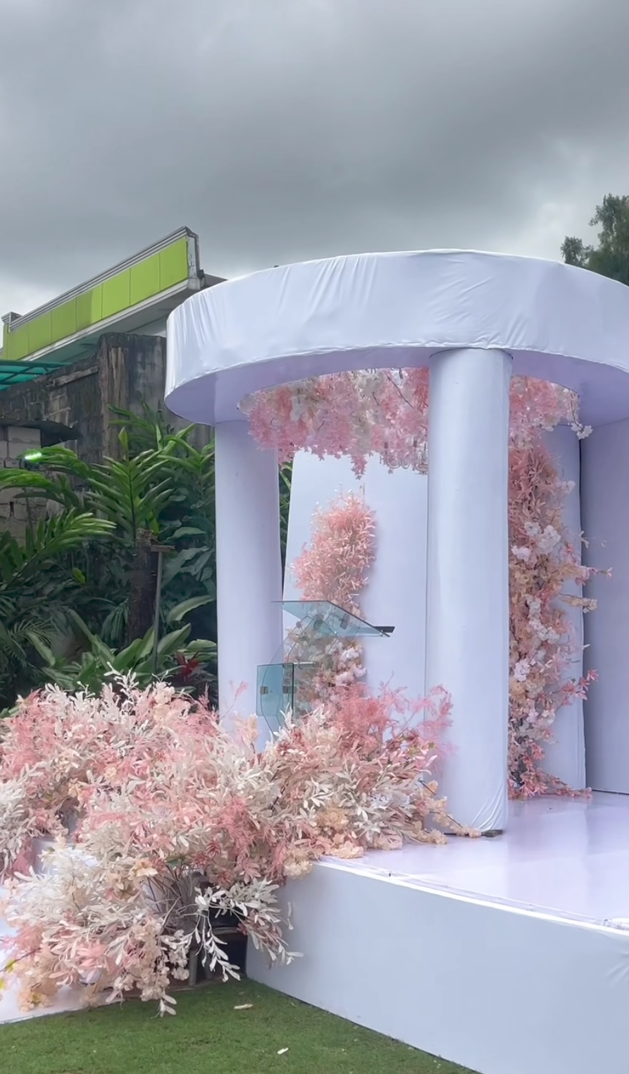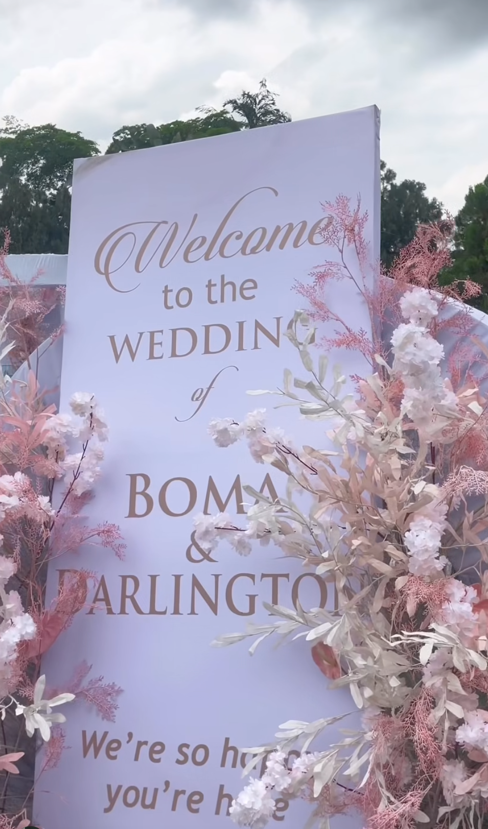 The wedding settings looked like something you can only imagine in your dreams: the soft pastel blossoms of pink and white surrounding the stage, giving it this fairytale appearance. The place was filled so much joy that it felt like even the weather was smiling on us, we didn't record any drop of rainfall.