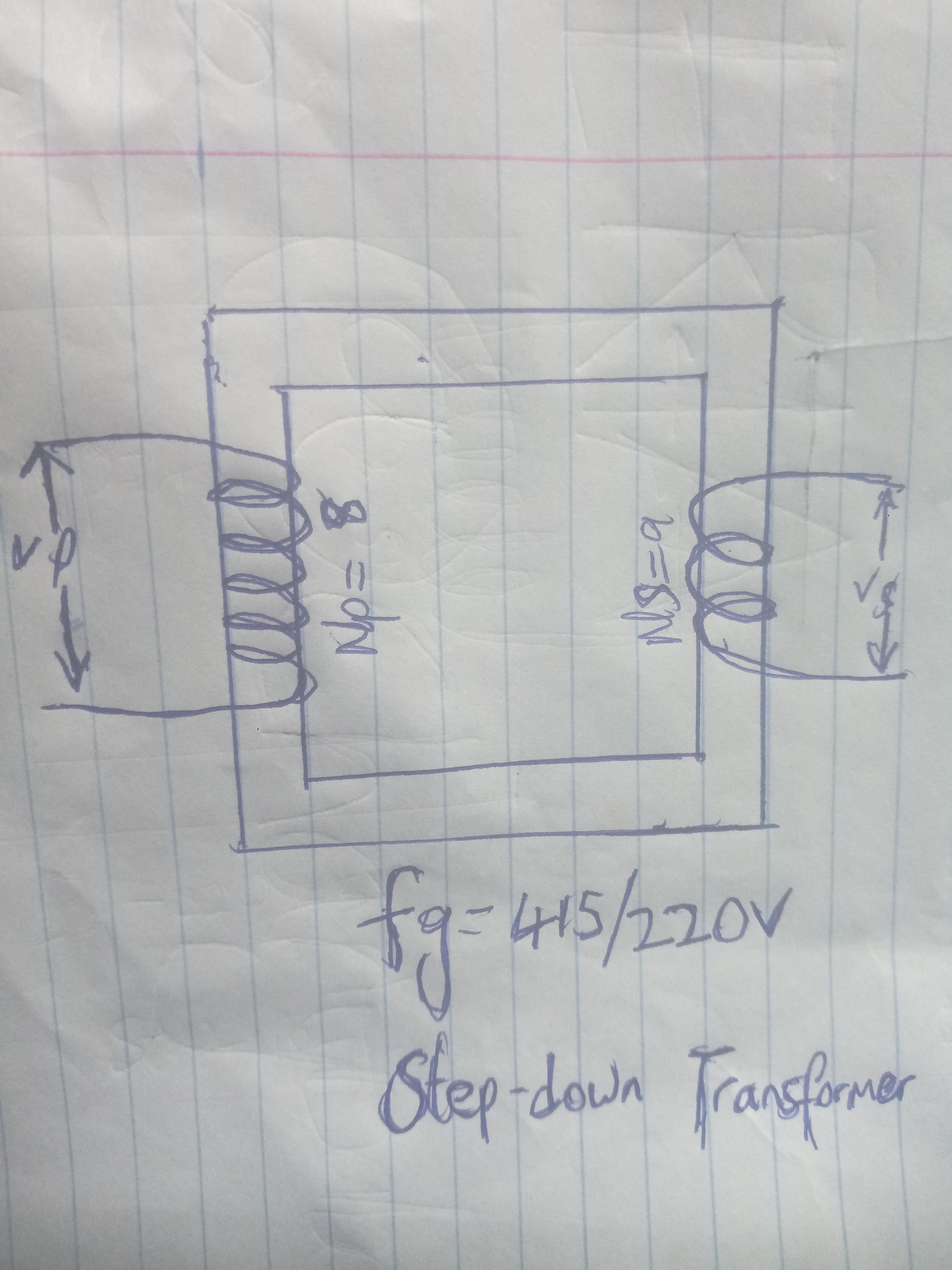 Second Diagram:The second diagram with 415/220V shows that voltage is been converted from a higher voltage to a lower voltage which tells us that the second diagram of the transformer is a step down transformer .