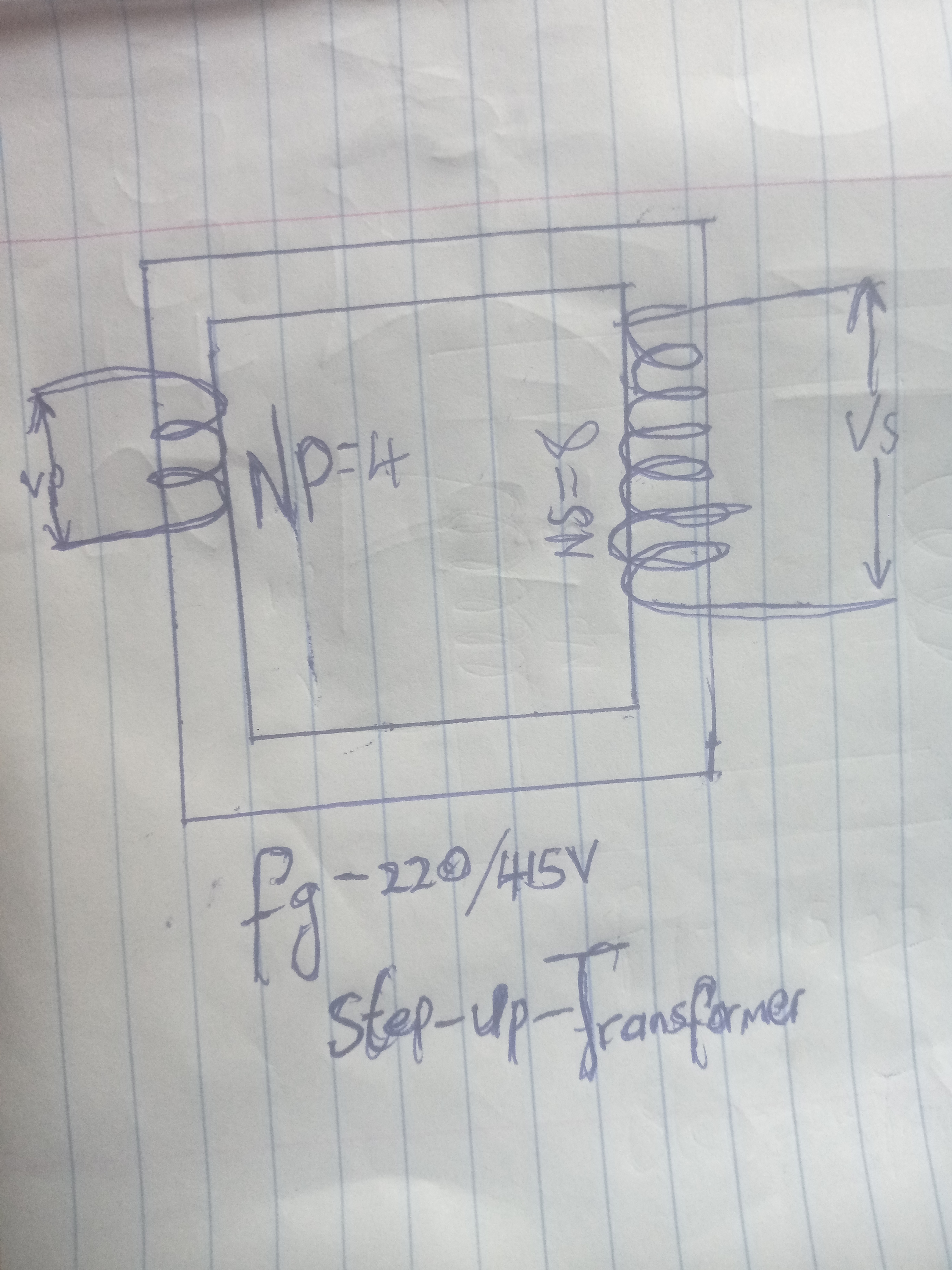 On the diagram we can see that the voltage conversion of the transformer is ranging from 220 to 415V And this proof that the transformer is stepping up from 220v to 415v