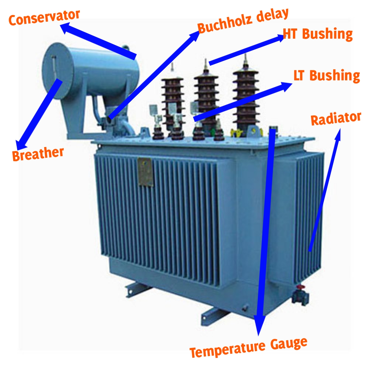 Conservator :Conservator helps to store additional transformer oil which can be drawn into the transformer tank whenever it's needed.