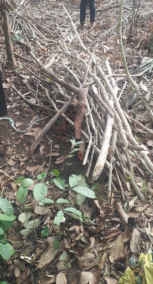 I've cleared the whole portion of land successfully and I drank 10 litres of water that I took along with me because of course the work was a breath-taking one but I was enough to finish it... I've cleared and cut down the branches of the woods and scrape their leaves and spread them to the ground for them to dry so that I can set them on fire to create space for the cultivation...... And I'm planning on cultivating cassava and corn because this is their season. Well as we all know they said there's no food for a lazy man.