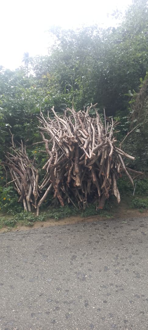 These are the firewood I harvested from the farm and this is the perfect spot to lay them down before taking them home for domestic consumption. For the firewood got to these levels I had to carry them 23 times till there was none left in the farm land. And I've successfully stacked them up in a proper way.