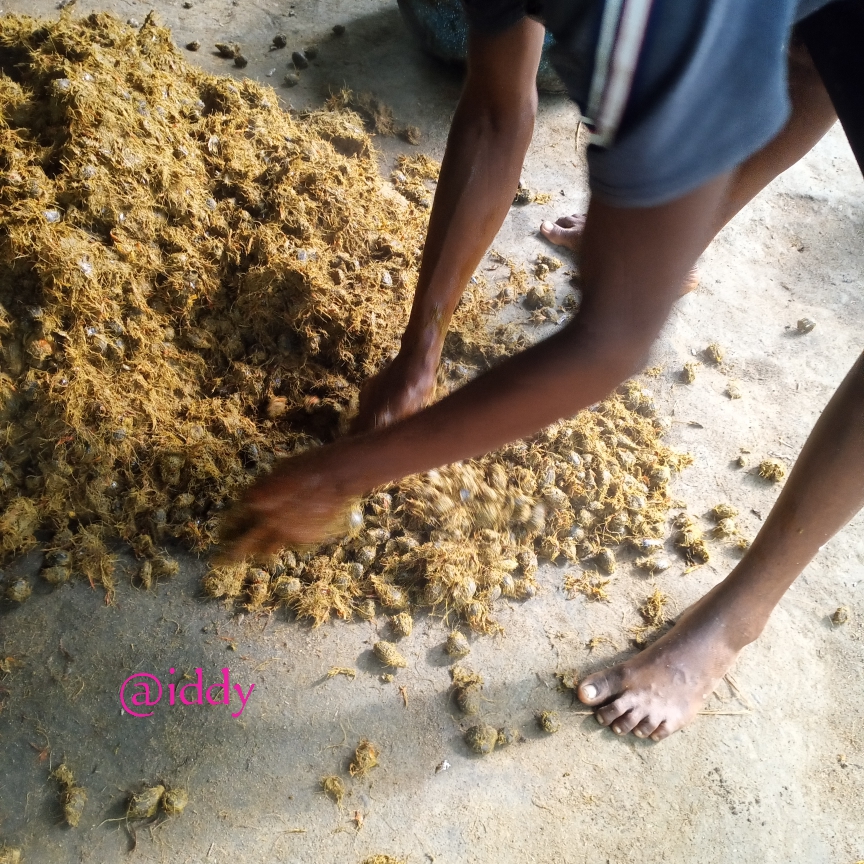 The Compressor: I needed equipment I could use and compressed the ground mesocarp to extract oil from it. The equipment is such that there is an inlet where the ground mesocarp is fed and the outlet where only the Oil is received as the product. I will write about its mechanism in one of my subsequent posts. The ground mesocarp and the kernel remain as Accumulation which would be removed after the extraction of oil.