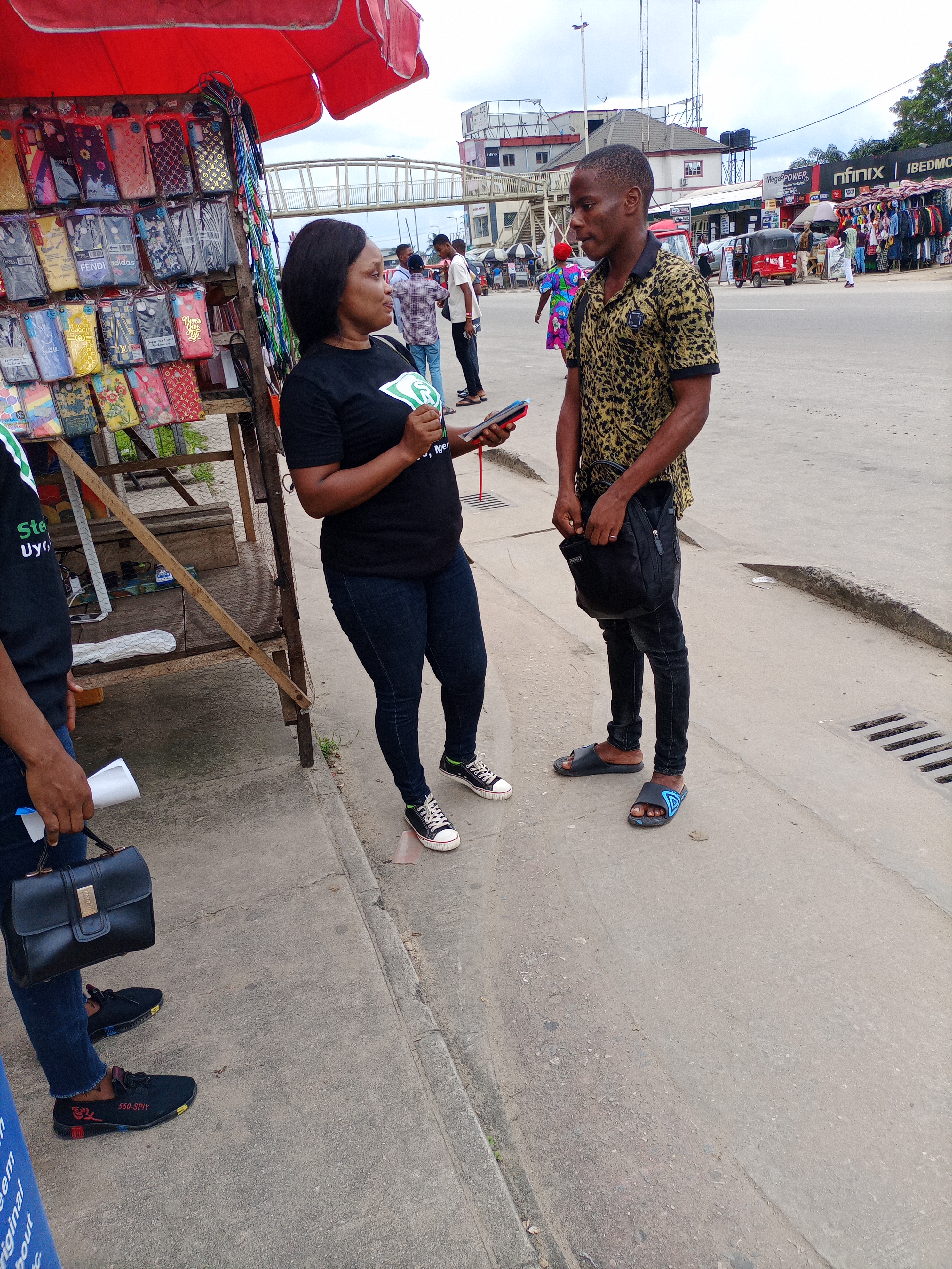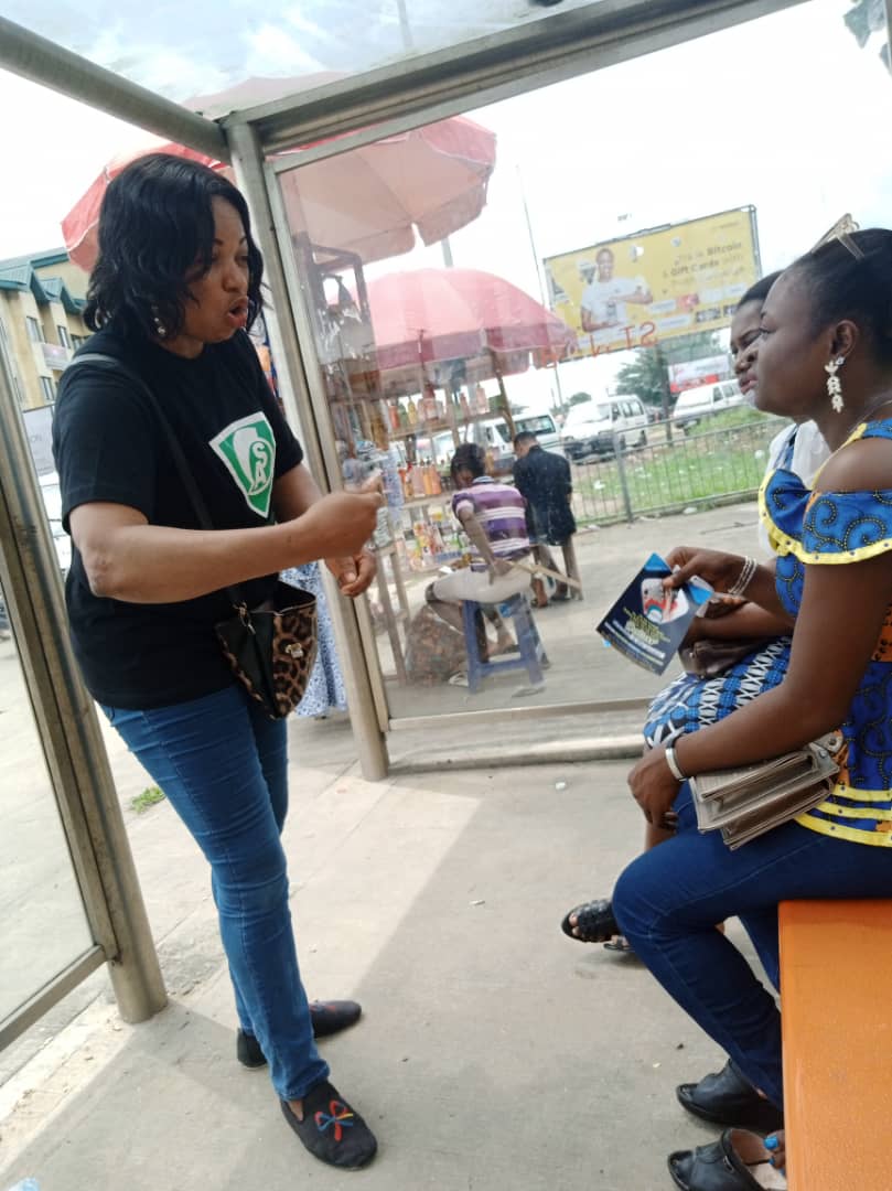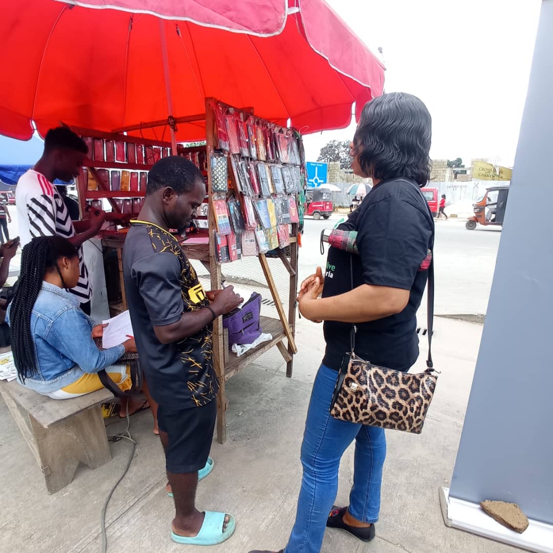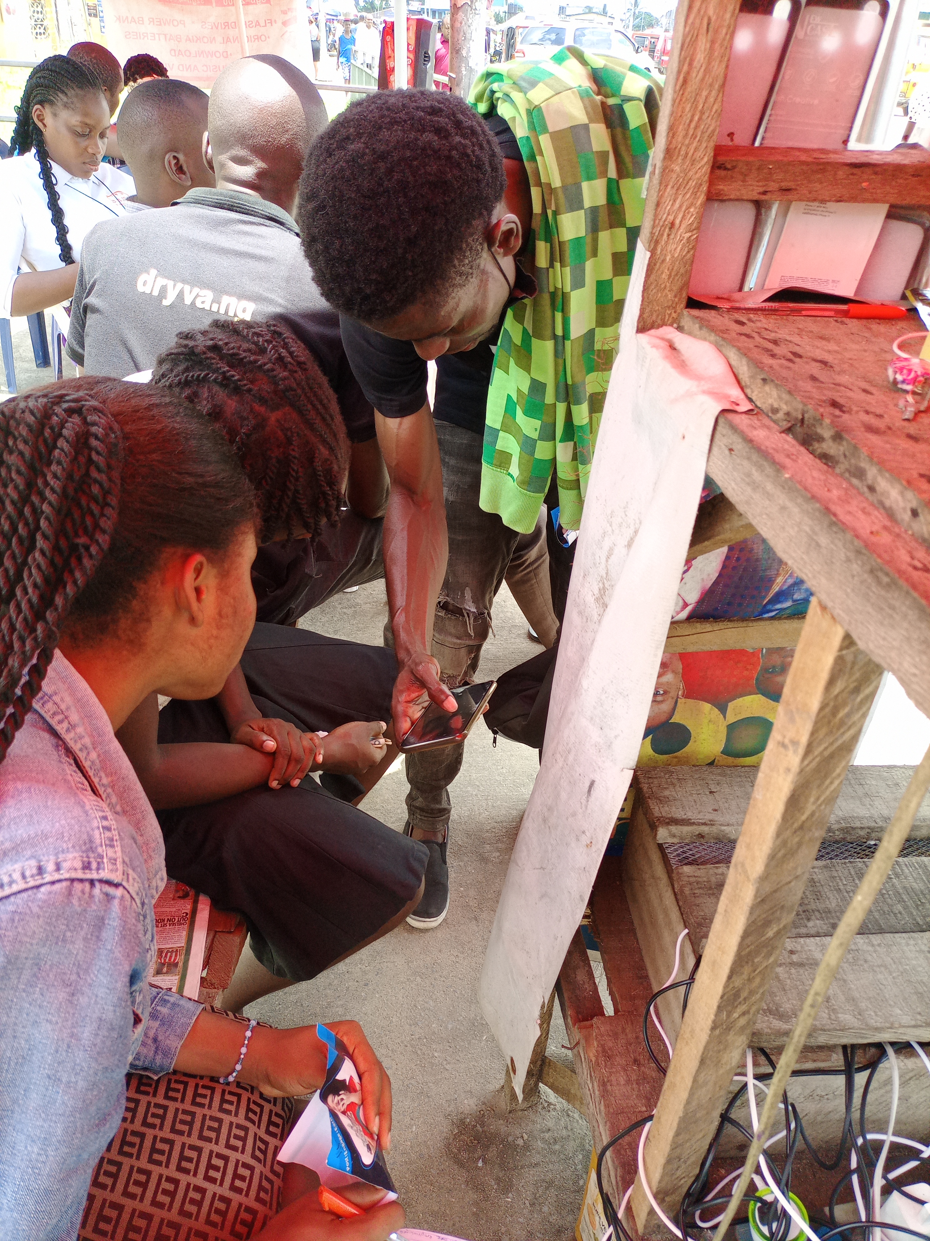 On arrival, we sought for a location to pitch our roll up stand. However, we were beckoned upon by someone that picked interest in the t-shirt and wanted to know what we were promoting. He listened to us and then showed us were to start. Just close to the school gate but at a place where is not out of bounds.
