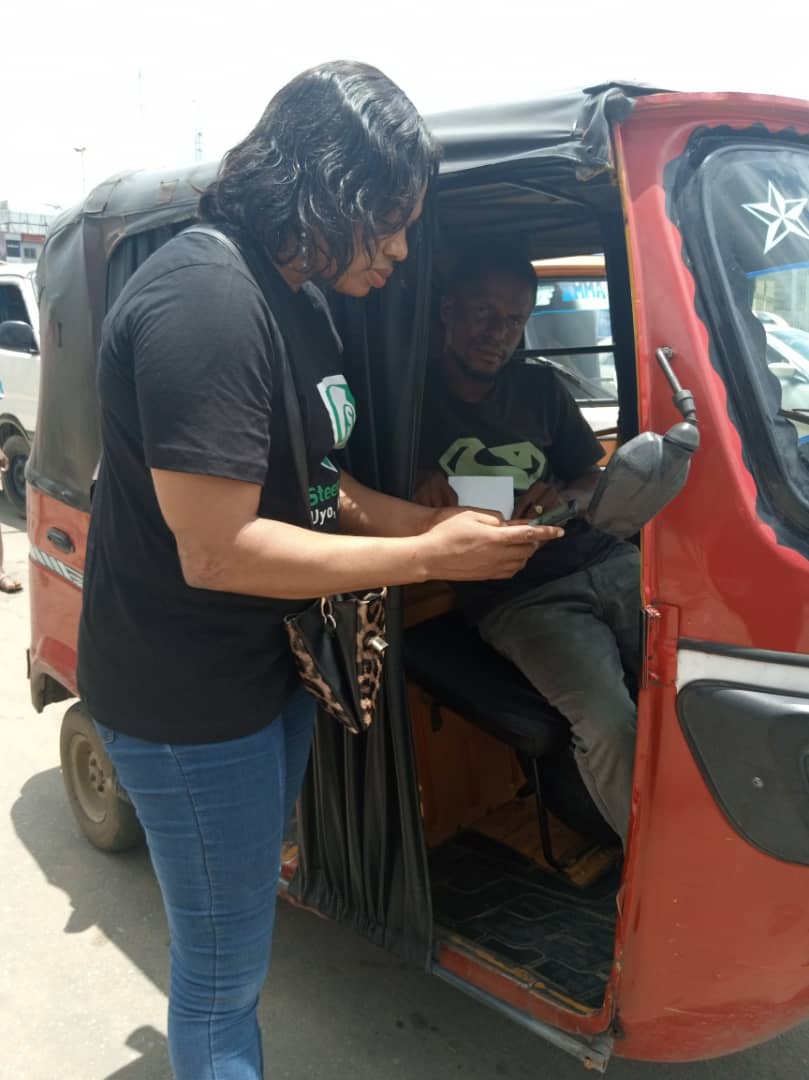 Below are the pictures we took before leaving and the one showing the first person in the vehicle that we started with. We gave him the flier and explained steemit to him.