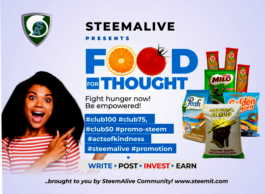 SteemAlive Presents FOOD4THOUGHT: Promoting Steem through acts of kindness. Kick-off date (Tuesday 19/4/2022)