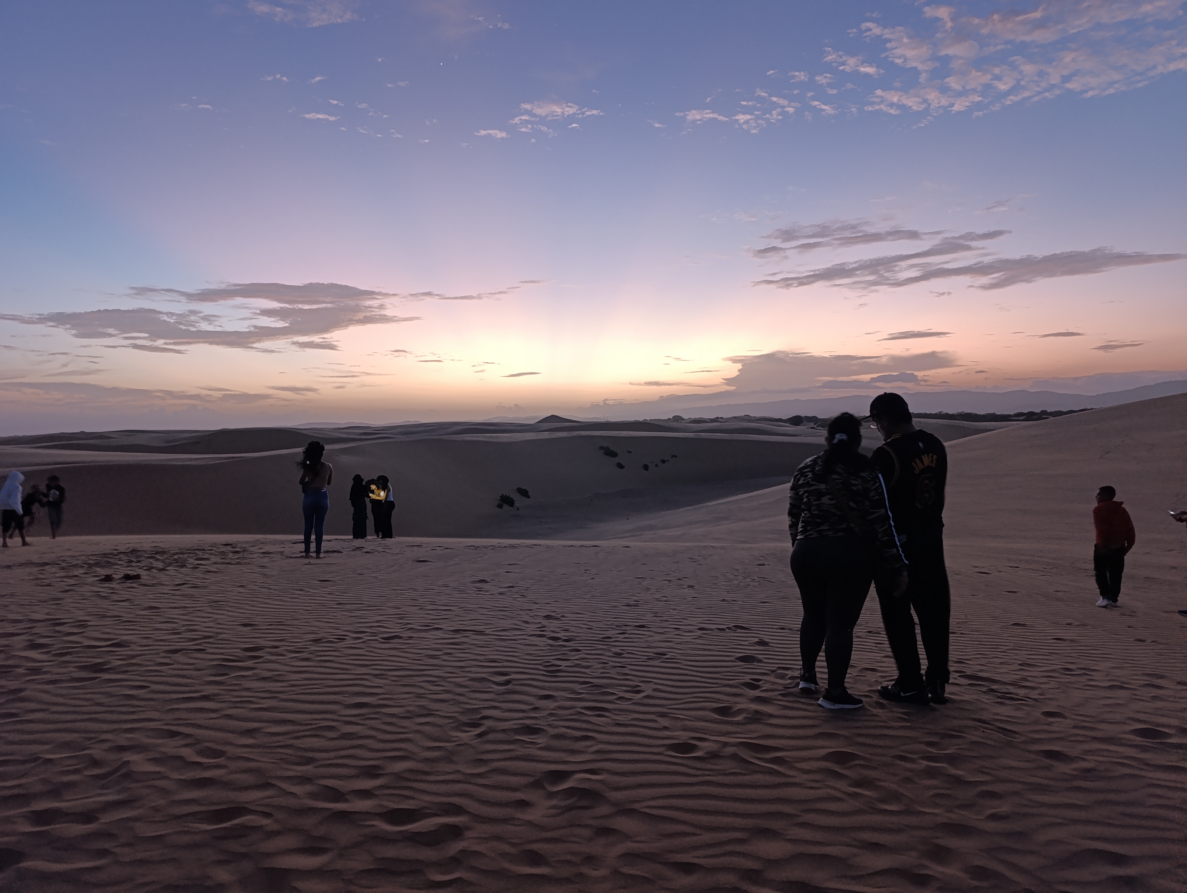Nuestro guía también nos invitó a apreciar los médanos y a tomar fotos, pues sus acumulaciones arenosas se desplazán constantemente de un lado a otro por el viento característico de la zona, por eso, cada visita ofrece un paisaje diferente.