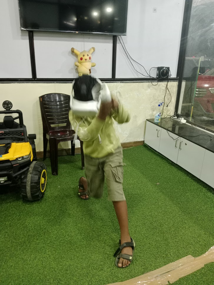 My son started playing games wearing VR. His actions were against hitting the ball, watching it run and jump, and even though it was looking different for us, it felt like he was actually playing, even though he couldn't pay attention to us but was enjoying all the features. He faced many balls but just hit one or two balls because it was his first time. to play such a game.