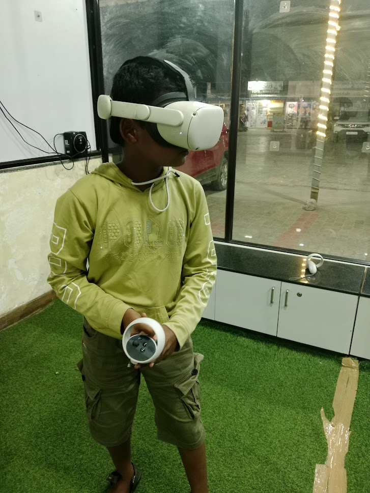 After 15 minutes, his was over, but he finished three well. After that, he wanted to play a VR game, so he chose to play the cricket game because he loves playing cricket.