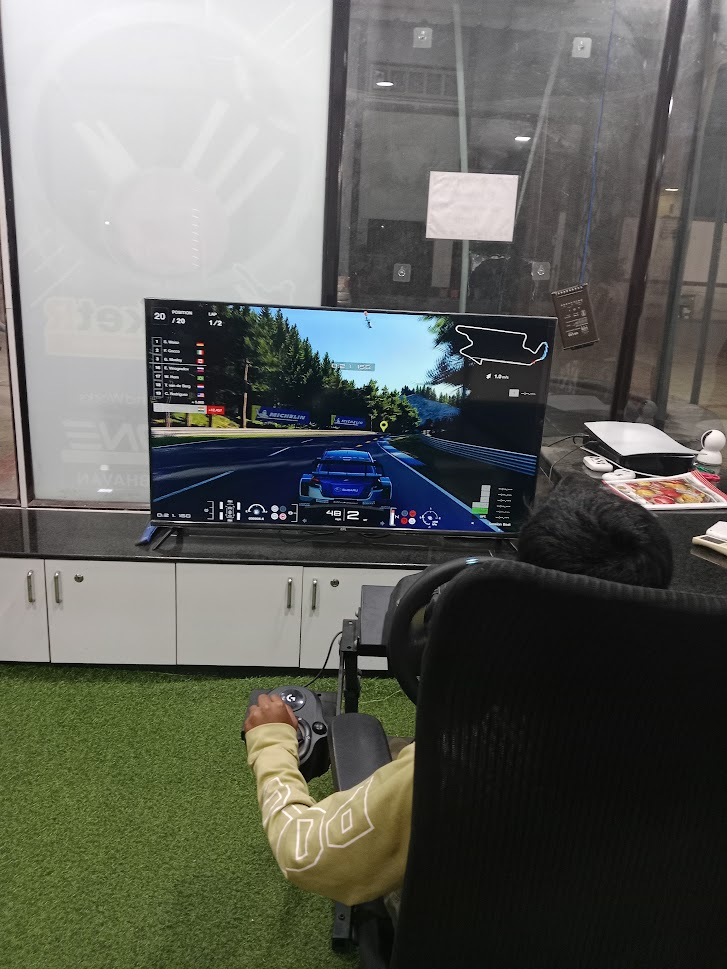 There are about 4 equipments in this VR ZONE, including two VRs, two simulators, and PLAYSEATs. The simulator has car games, car racing games, and shooting games. A fee of 100 rupees is charged to play. It takes about 10 to 15 minutes to play a game. For example, if you want to play a car race game, you have to drive 3 laps on the roads in that car race game. While driving, if the car gets into an accident or is completely damaged, you are given two chances to return. That too, if you cannot play within those 10 to 15 minutes, you will be unable to play.