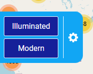 Clicking on the cog wheel will pop-out a mini menu offering two different 'skin' options for Steem Atlas - the original 'illuminated' style and the new 'modern' red, white and blue design...