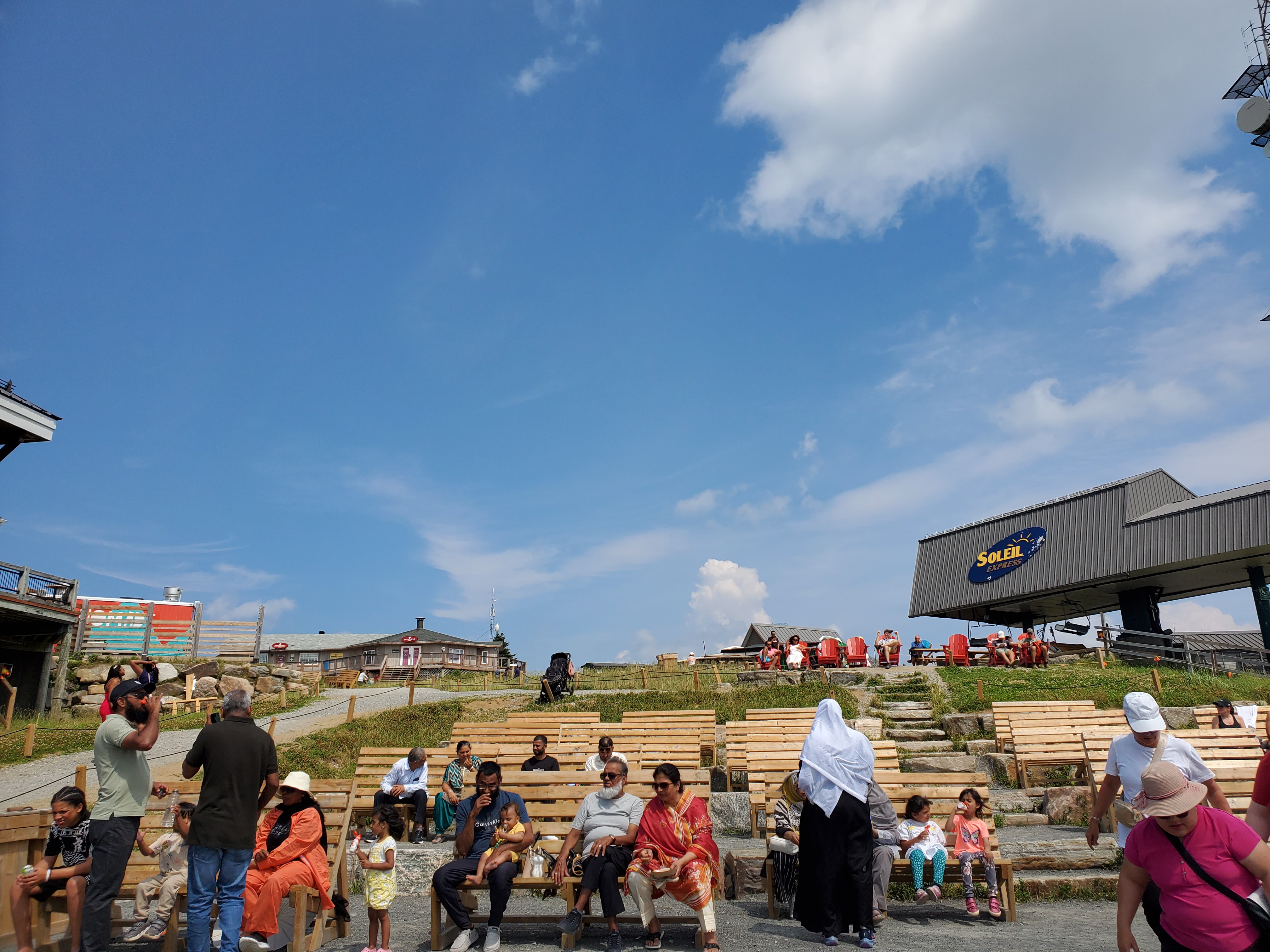 Tiered benches by the “Soleil” station where you can wait in comfort before riding up.