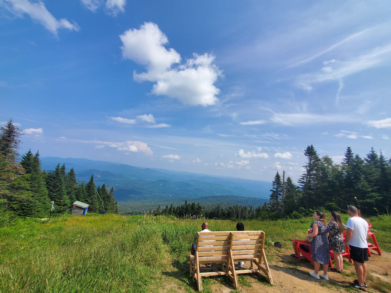 I went up on a summer afternoon with the family and the gondola immediately became a moving observation cabin where the kids pointed out lakes and trails below, after which we strolled to the wooden tower and then spent a long while in the red chairs, a simple moment made memorable because you feel suspended between sky and forest while a light breeze turns the pages of the landscape like a book.