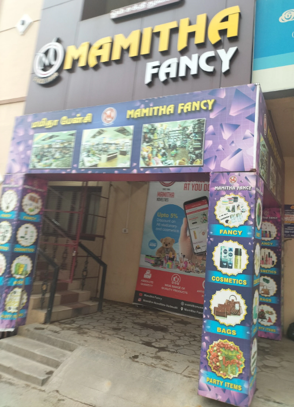The stationery and fancy store I recently visited, called "Mamitha novelties Gifts toys fancy Stationery" in Coimbatore, is a great place to find notebooks, stationery, women's jewelry, makeup products, toys, keychains, school bags, and household items all in one place at affordable prices. A wide range of collections, quality products, and reasonable prices are the highlights of this store, making it especially suitable for those who love the latest fashion trends.