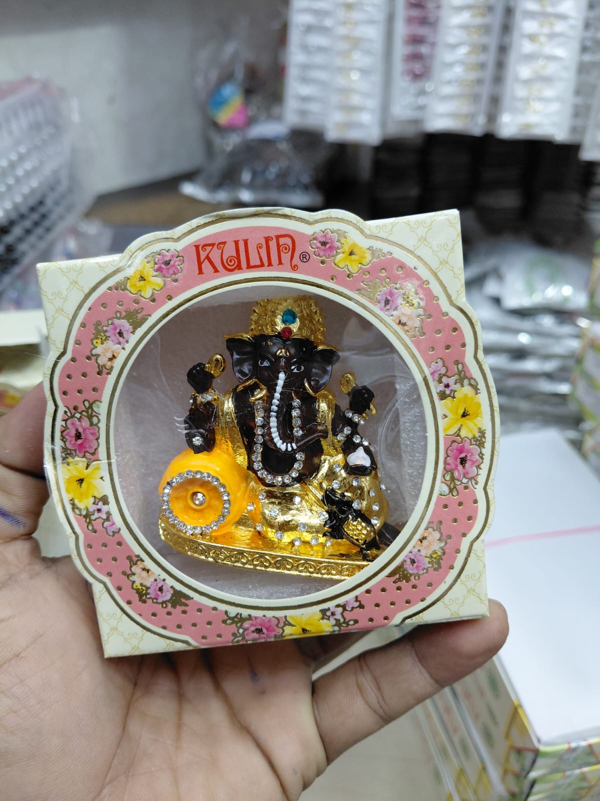 Similarly, the section selling school supplies had notebooks, school bags, sketch pens, art supplies, colored pencils, numerous types of pencils, fancy pencils, pens, geometry boxes, lunch boxes, water bottles, shoe polish, socks, and belts. Among the toys, there were religious figurines, toys that children play with, and decorative toys for the home. The statues of deities were very beautiful, especially those of Ganesha, which came in many varieties. They were made of clay, and there were also some made of metal.