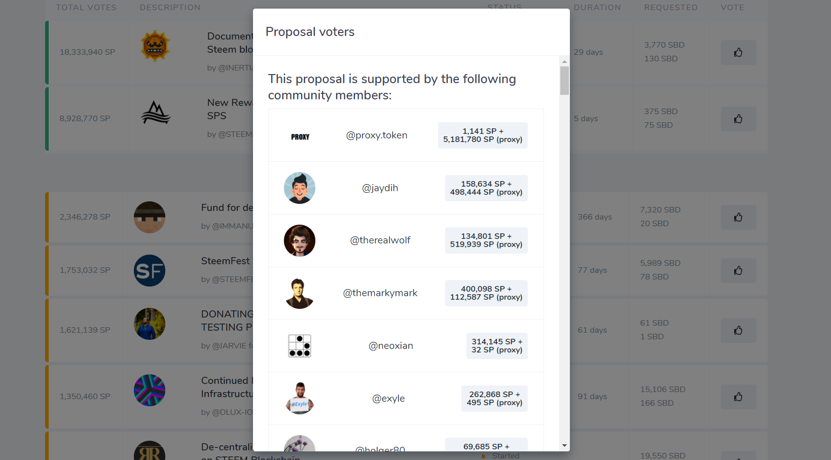 You can also check the voters of this specific proposal. The total votes are calculated based on Steem Power (and proxy) of all of the voters of this particular proposal (something I described earlier). This is especially important for inactive proposals that aren't updated, and according to Steemit devs, this is not a priority so it just had to be implemented. It's very confusing because you can't see the real votes if you don't calculate it manually.