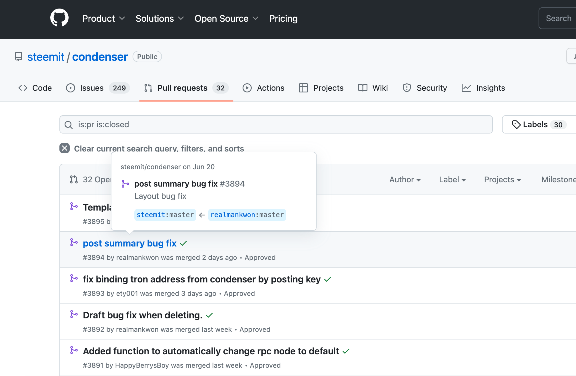 최근 스팀잇 콘덴서의 주요 기능 업데이트 이후 몇 가지 오류가 발견되어 버그 픽스 버전의 Pull Request가 Approved 되었으나 아직 스팀잇에 통합되지는 않고 있네요.