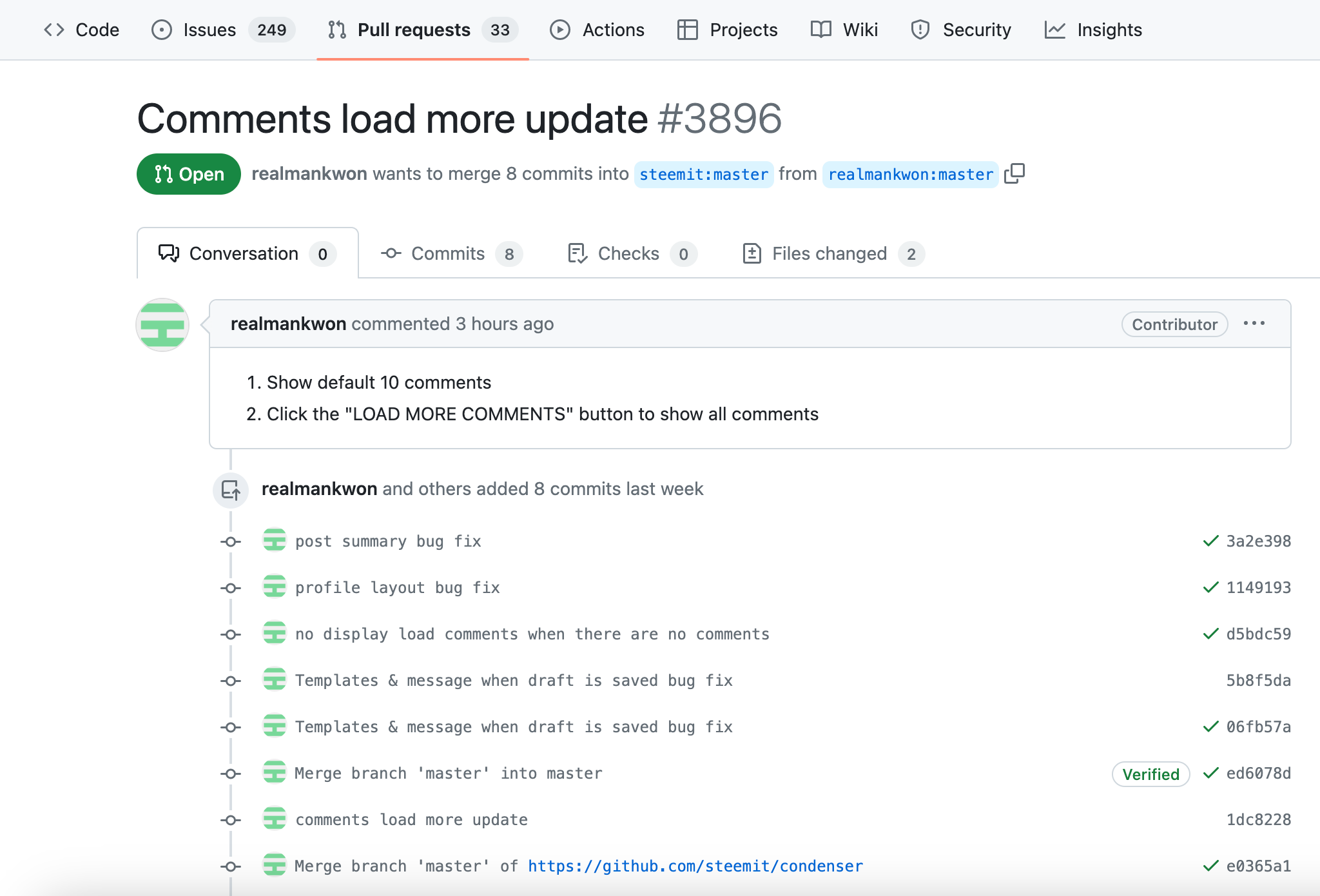 CDR(@dip.team) 및 커뮤니티 멤버들의 피드백 의견을 반영하여 첫 10개의 댓글은 기존과 동일하게 곧바로 보여주고, 댓글이 10개를 초과하는 경우에만 Load more comments 버튼이 나타나서 별도로 확인할 수 있도록 개선된 업데이트 버전이 통합되면 현재 단계에서 마무리할 수 있는 모든 개발이 종료된다고 할 수 있겠네요.