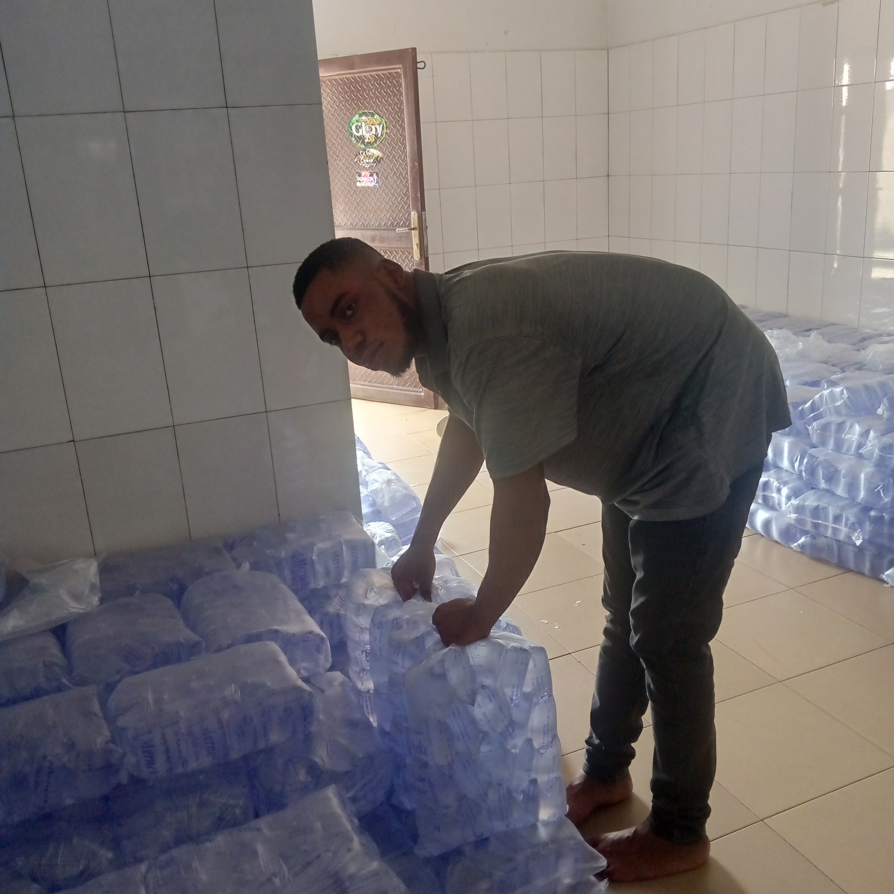 One of the toughest parts of the day was stacking the pure water. Each bag felt heavier than the last, and the more we produced, the more we had to arrange. My coworkers and I formed a small team, lifting, carrying, and packing the bags carefully to avoid them falling or bursting. Even though we were tired, we still encouraged each other, because teamwork is the only way to survive days like this.