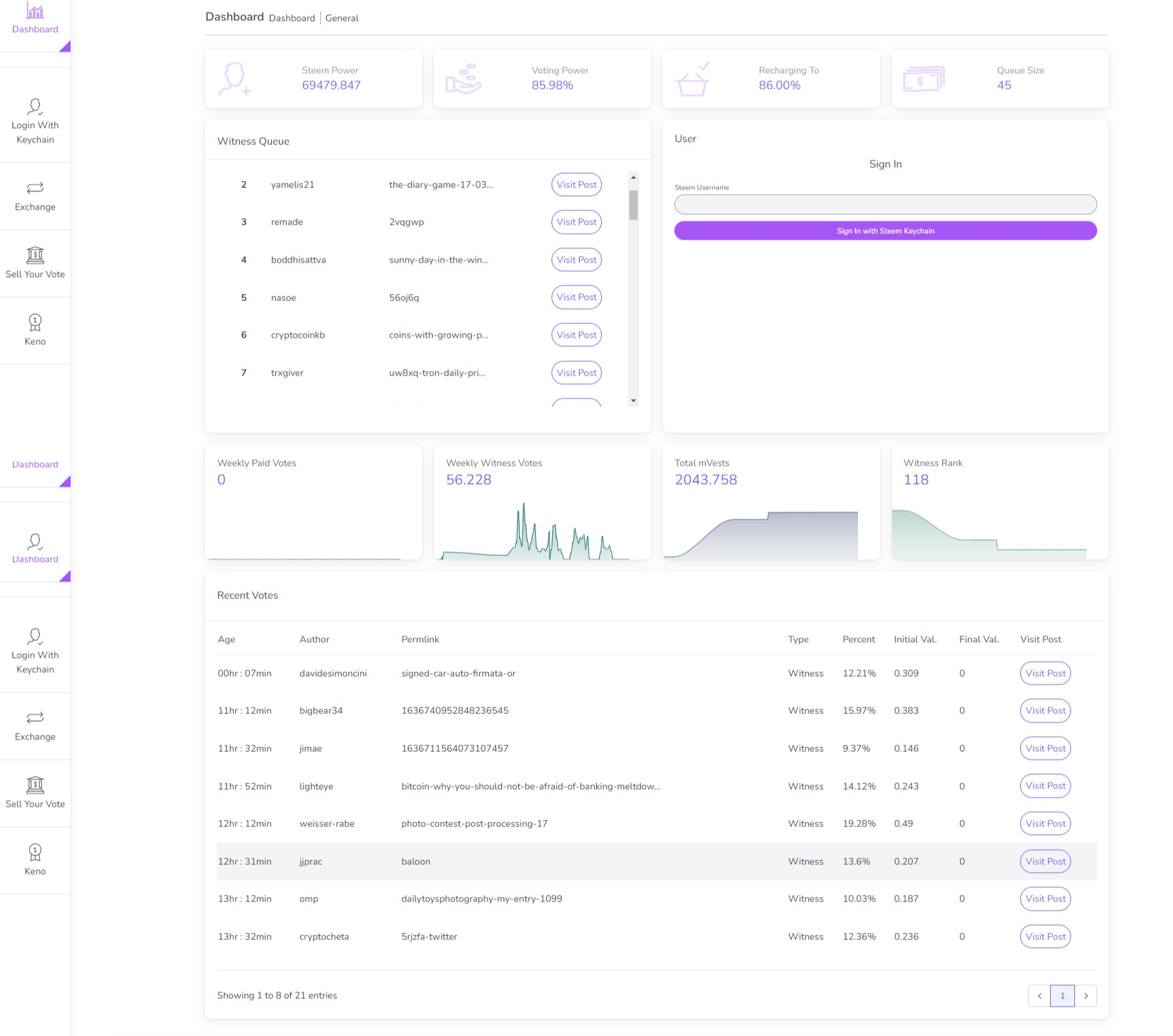 Updated site almost donesteemegg (65)in #steemegg • 3 years ago Okay i know you guys know, but I reworked the witness script last week and I just wanted everyone to knowthat the dashboard is almost live. I just need to finish linking a few more things and it will be fully functional. #website #krsuccess