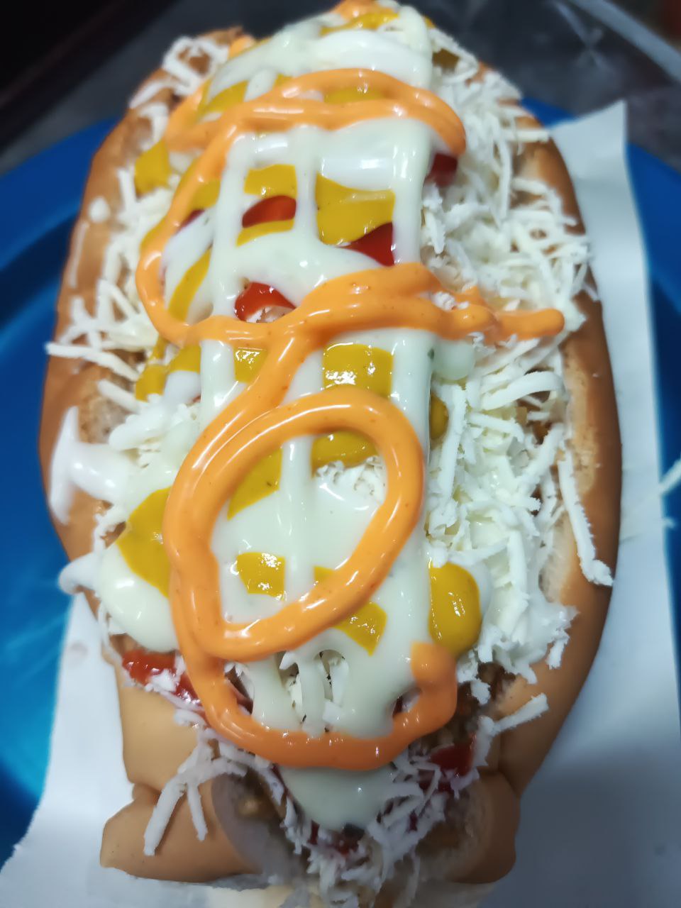 Saludos a todos, hoy les presento este delicioso perro caliente que disfruté con ricas salsas.