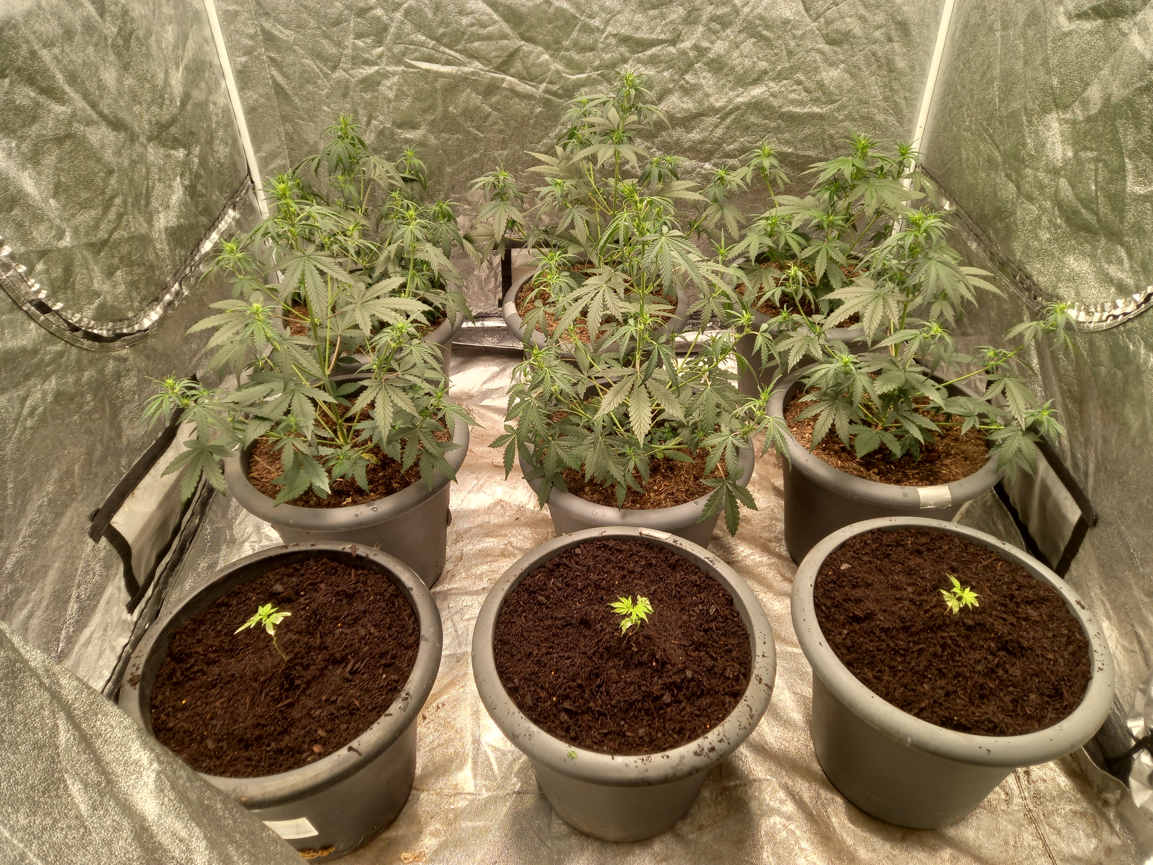 They are just on an H20 diet and are getting 18 hours of light with 6 hours of nighttime, all are in 20 litre pots