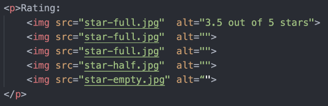 Not that even though there are multiple images they are all indicating one piece of information, therefore only the first image has the alternative text, and the remainder are treated as decorative images.