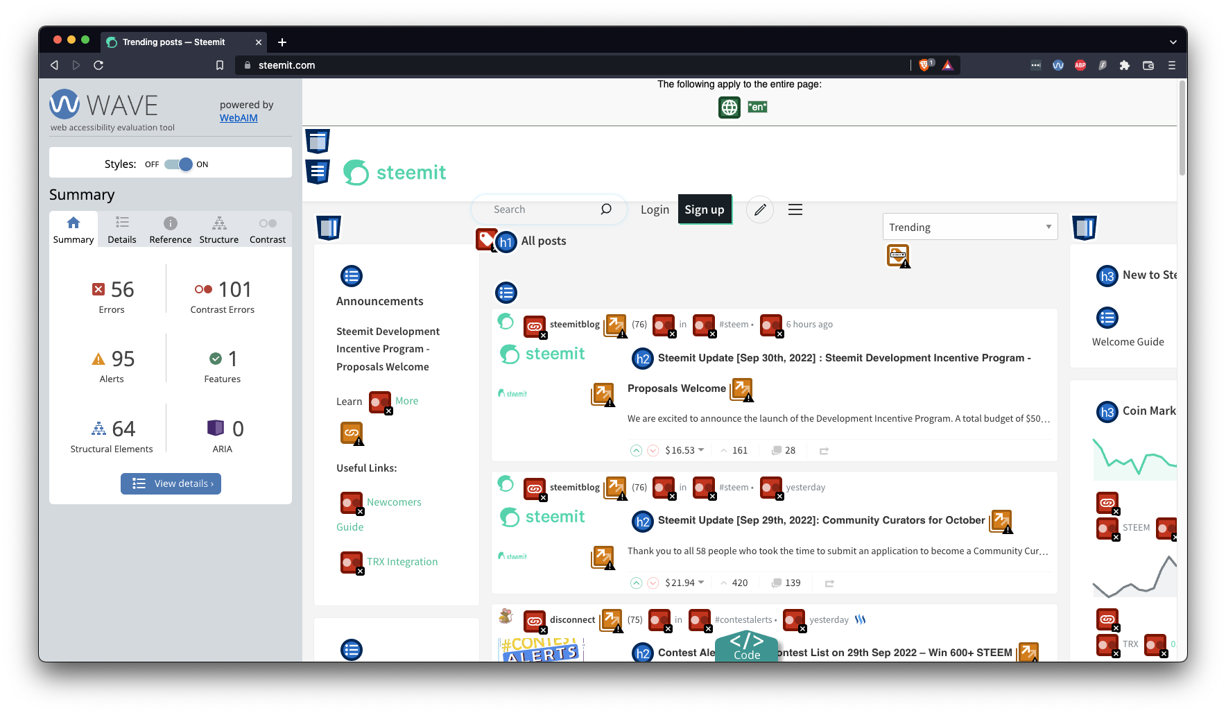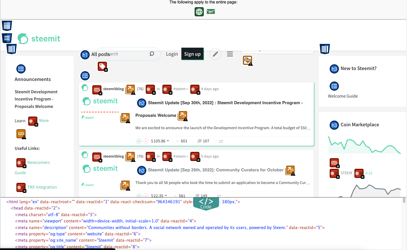 Now that we have our new tool to hand let's run our first test, unfortunately, my current client I intended to use for this series hasn’t launched their site yet so I am not at liberty to use them as an example so what better alternative is there than to use our beloved steemit homepage as our test case. And this is what we get.