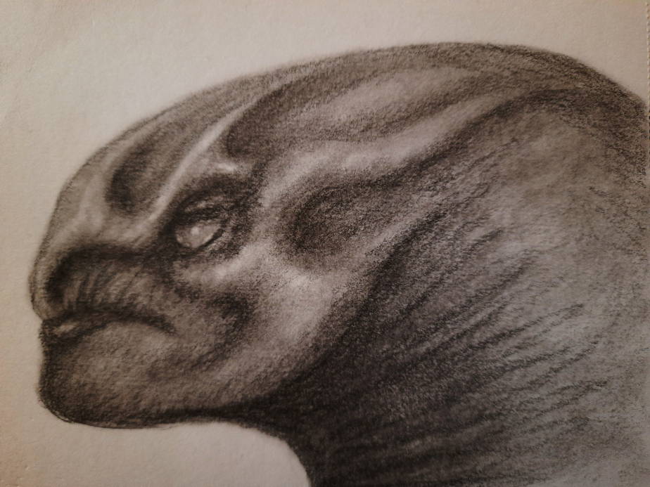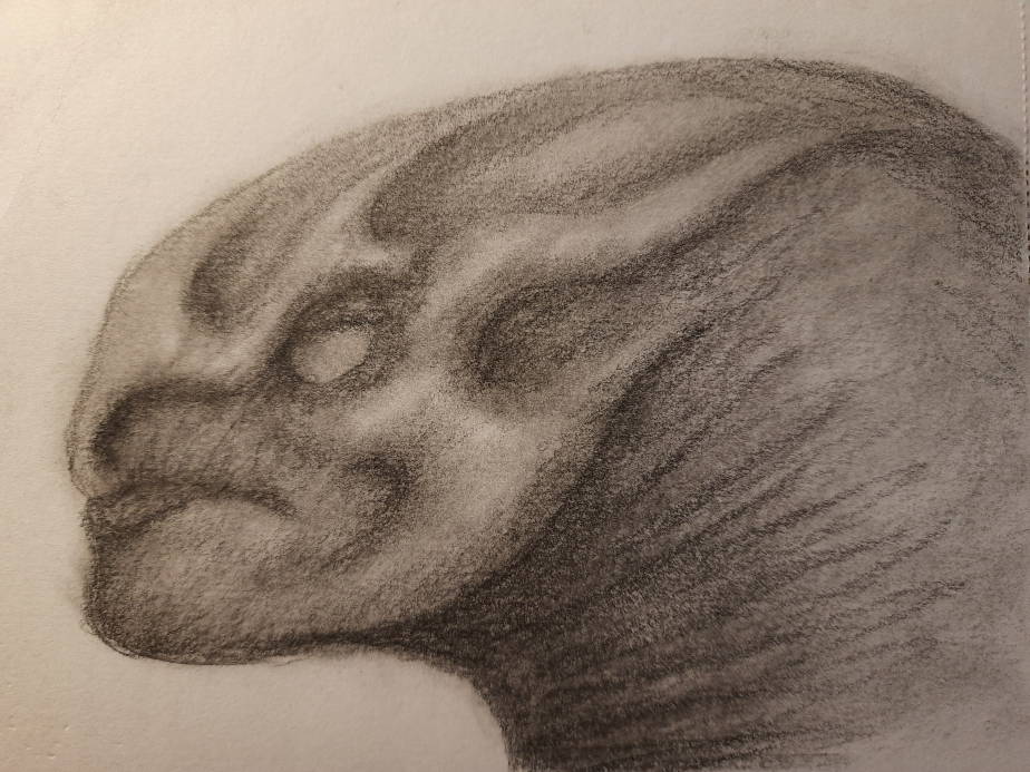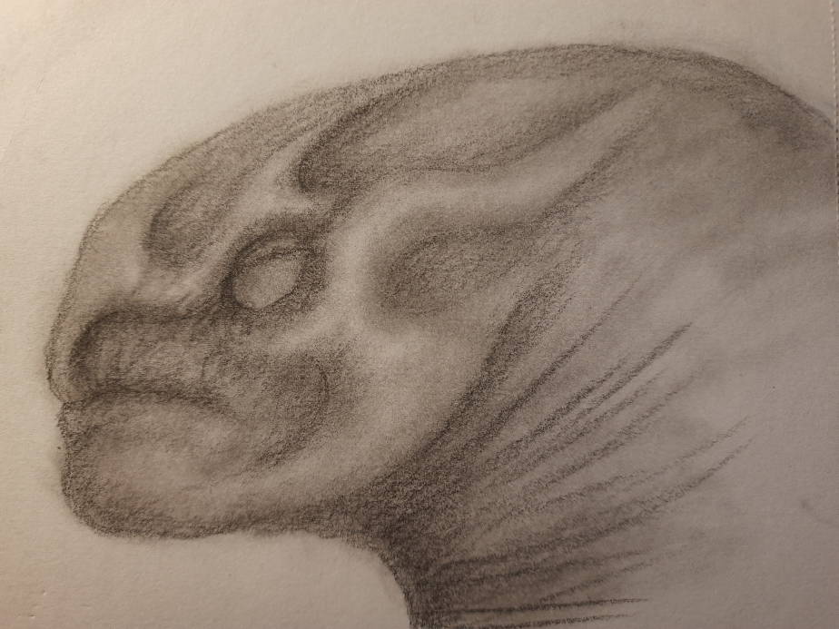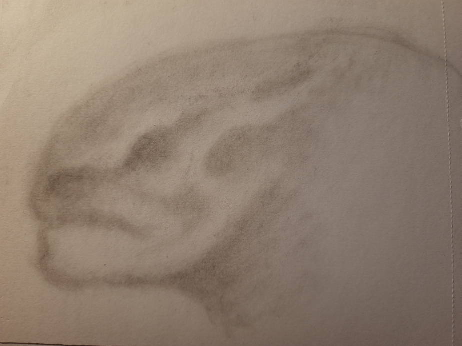 The process for this started with laying down a rough shape with a cotton ball and black pastel chalk, I then use a cotton bud to refine the shapes before using Staedtler Mars black pencils. (4B,8B)