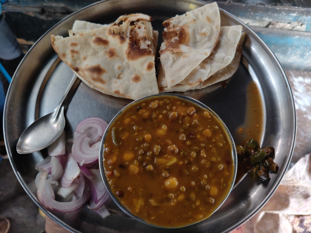 ছাতাটা বগল দাবা করে টিনের চালের নিচে ভালোভাবে দাঁড়ালাম। আর অর্ডার করে দিলাম, দুটো তন্দুরি রুটি, এক প্লেট তড়কা। অর্ডার করার কিছু সময়ের মধ্যে হাতে পেলাম গরমা গরম খাবারm রুটি ছিঁড়ে তড়কাতে চুবিয়ে মুখে দিলাম! ক্রিমের মতো ঘন তড়কা ডাল মুখে পড়তে, বৃষ্টিভেজা দুপুরে যেন এক শান্তির ঘ্রাণ পেলাম। দুটো রুটি দিয়ে পুরো তড়কার বাটি উড়িয়ে দিলাম। তারপর আরো দুটি রুটি নিলাম, তবে তড়কা শেষ হয়ে যাওয়ার কারণে নিলাম এক প্লেট চানা মশলা। রুটি আর চানা মশলা গ্রাস নিলাম, ঝাল-মিষ্টি স্বাদে জিভ মহানন্দে নেচে উঠল। চানার সাথে থাকা মশলার তীব্রতা আর কাঁচা পেঁয়াজের টুকরো প্রতিটি কামড়কে নতুন ভাবে অনুভূতি দিচ্ছিলো।