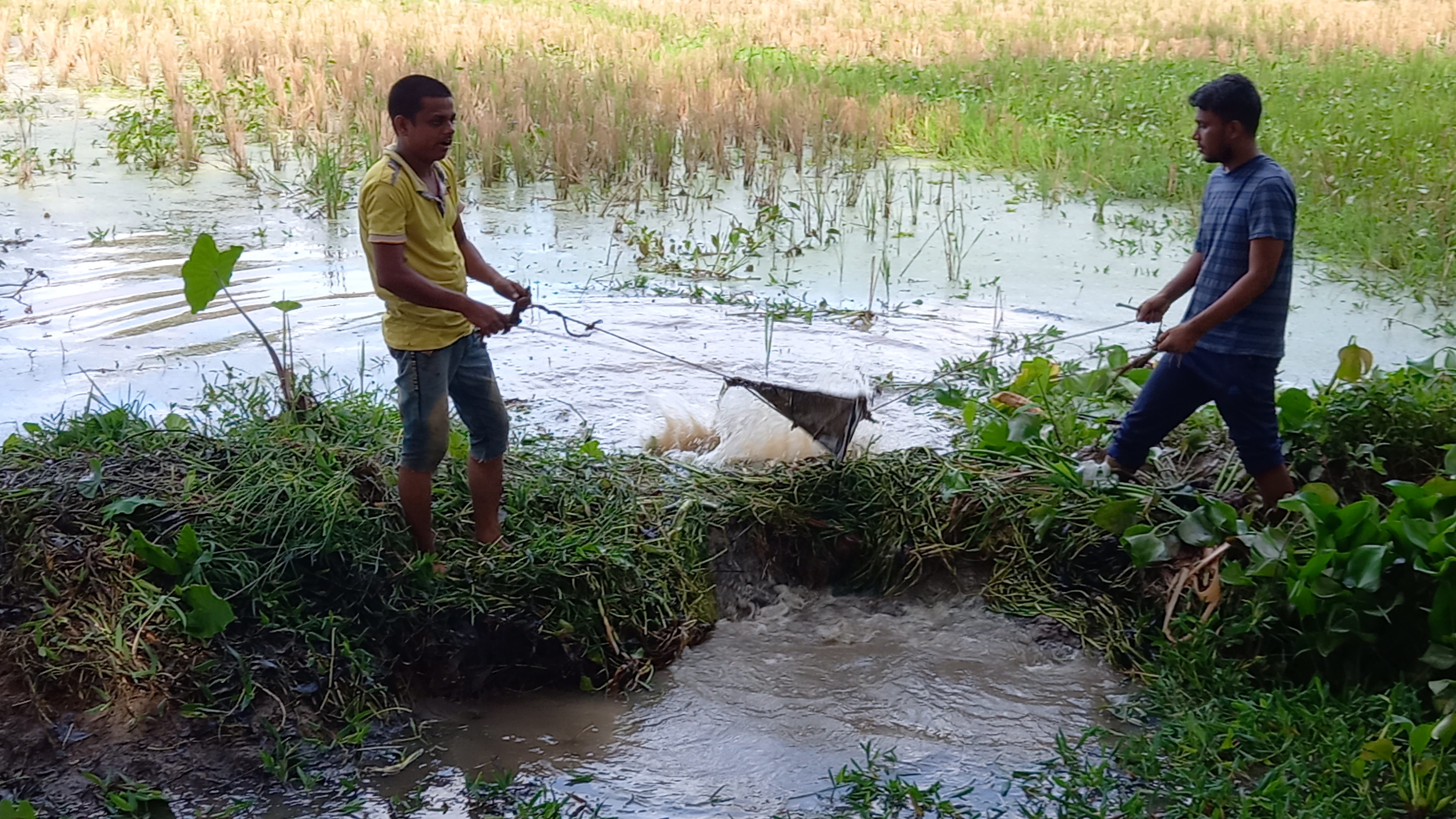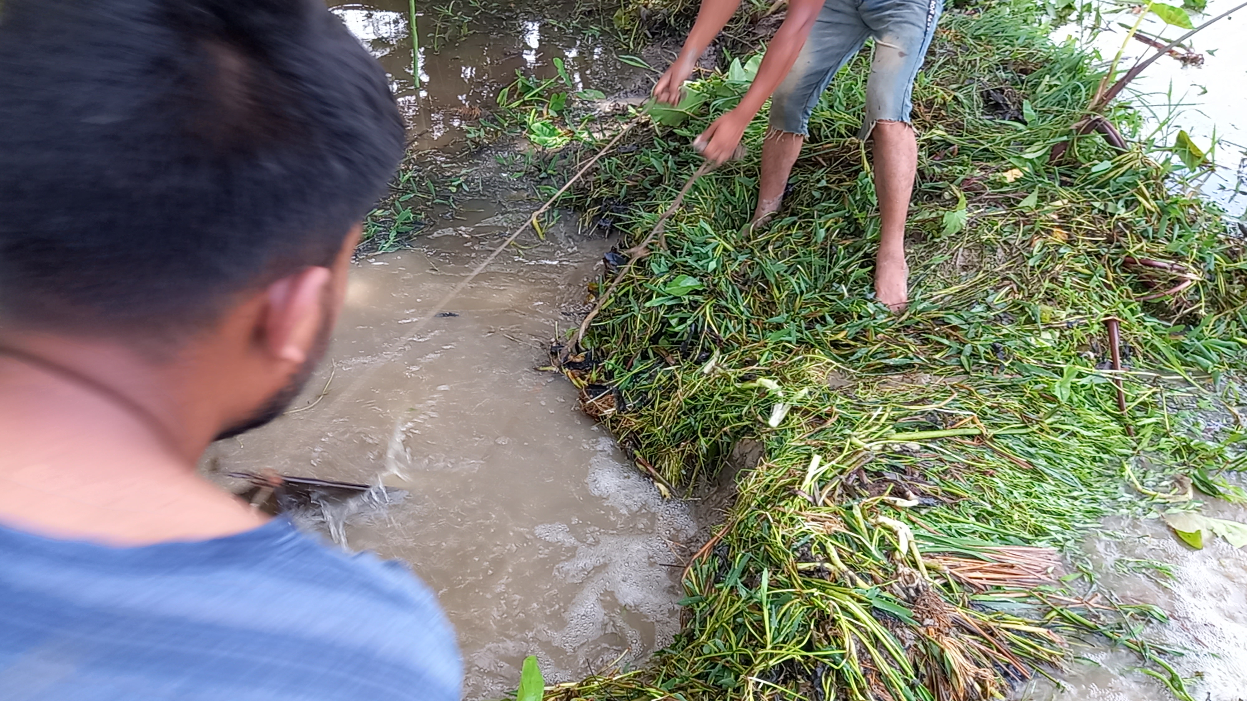 তারপরে কিছুক্ষণ পরে তাদের সঙ্গে দেখা করতে গেলে দেখতে পেলাম, তারা সেলফি দিয়া চুয়া সেচ দেওয়া শুরু করেছে। এমন ছেউতি ব্যবহার করতে দুজন লোক লাগে ।এভাবেই গ্রামগঞ্জে পানি শুকিয়ে মাছ মারানো হয়।