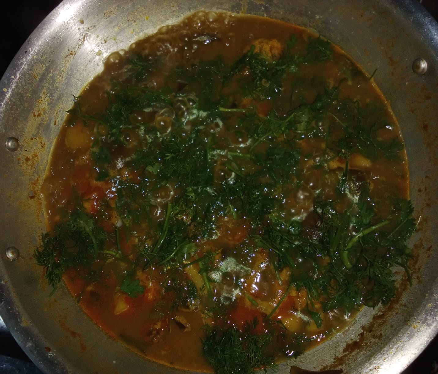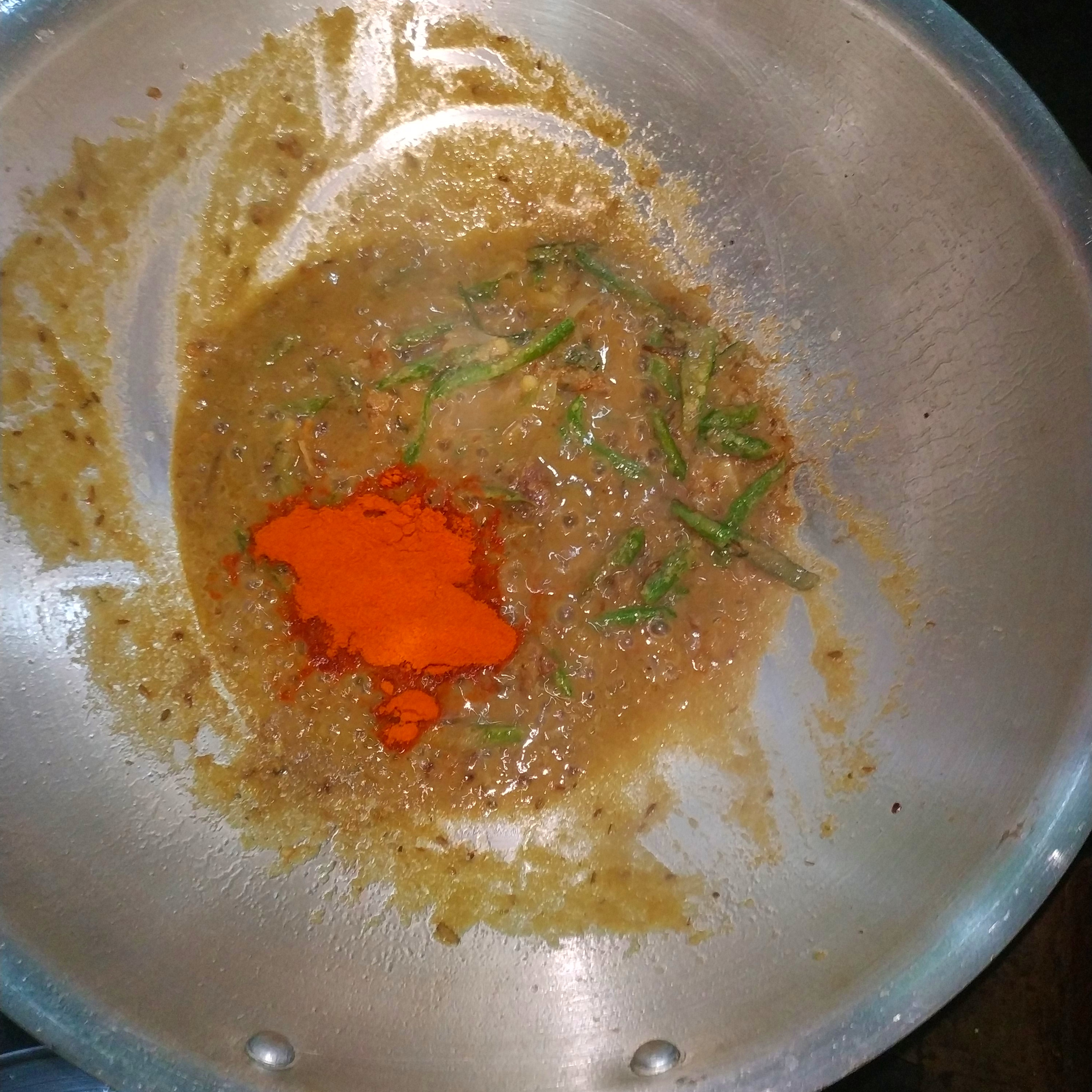 - তারপরে মরিচের গুঁড়া, হলুদের গুঁড়া অন্যান্য মসলা দিয়ে এই মসলার ঝোল তৈরি করে নিলাম।