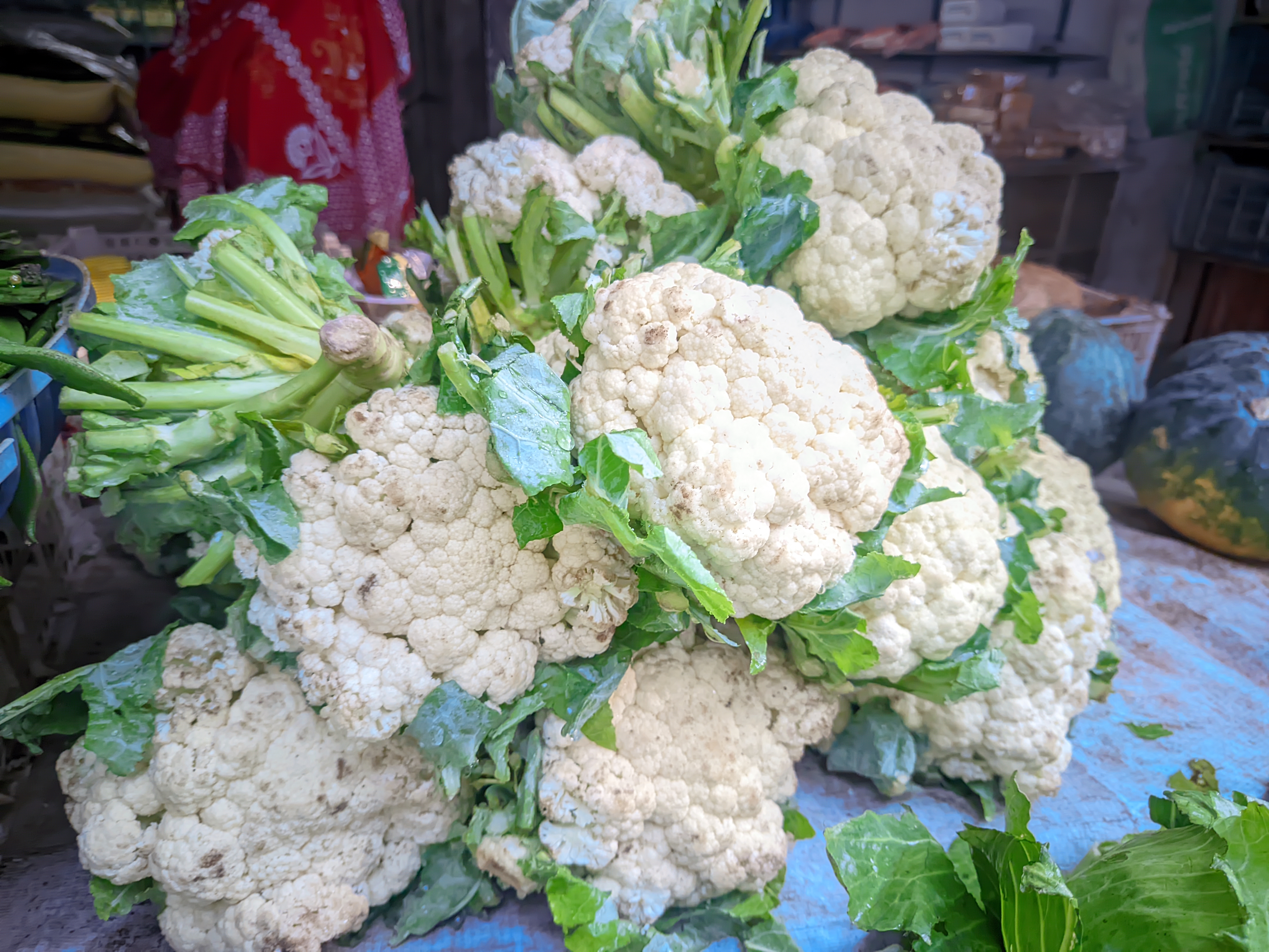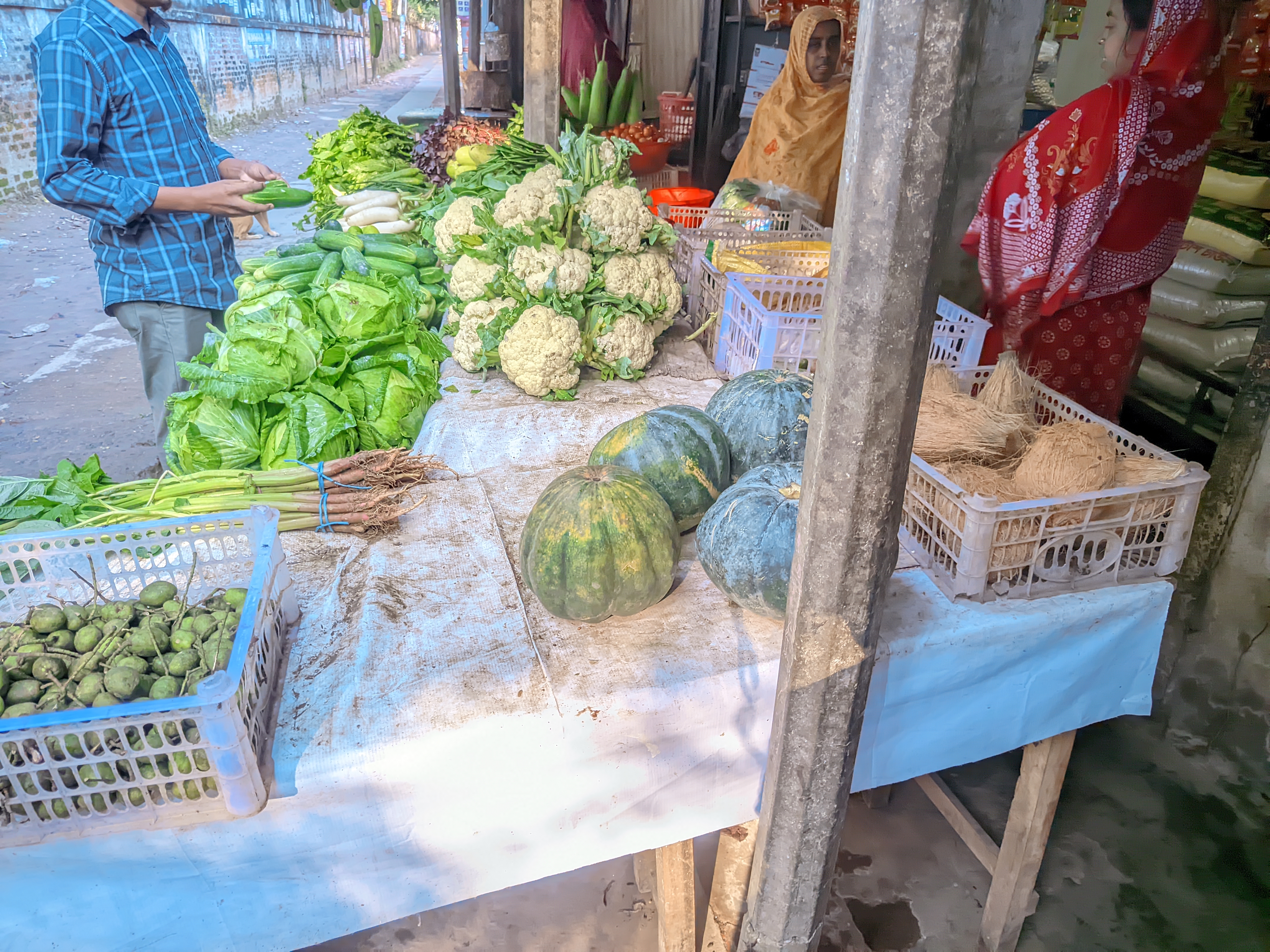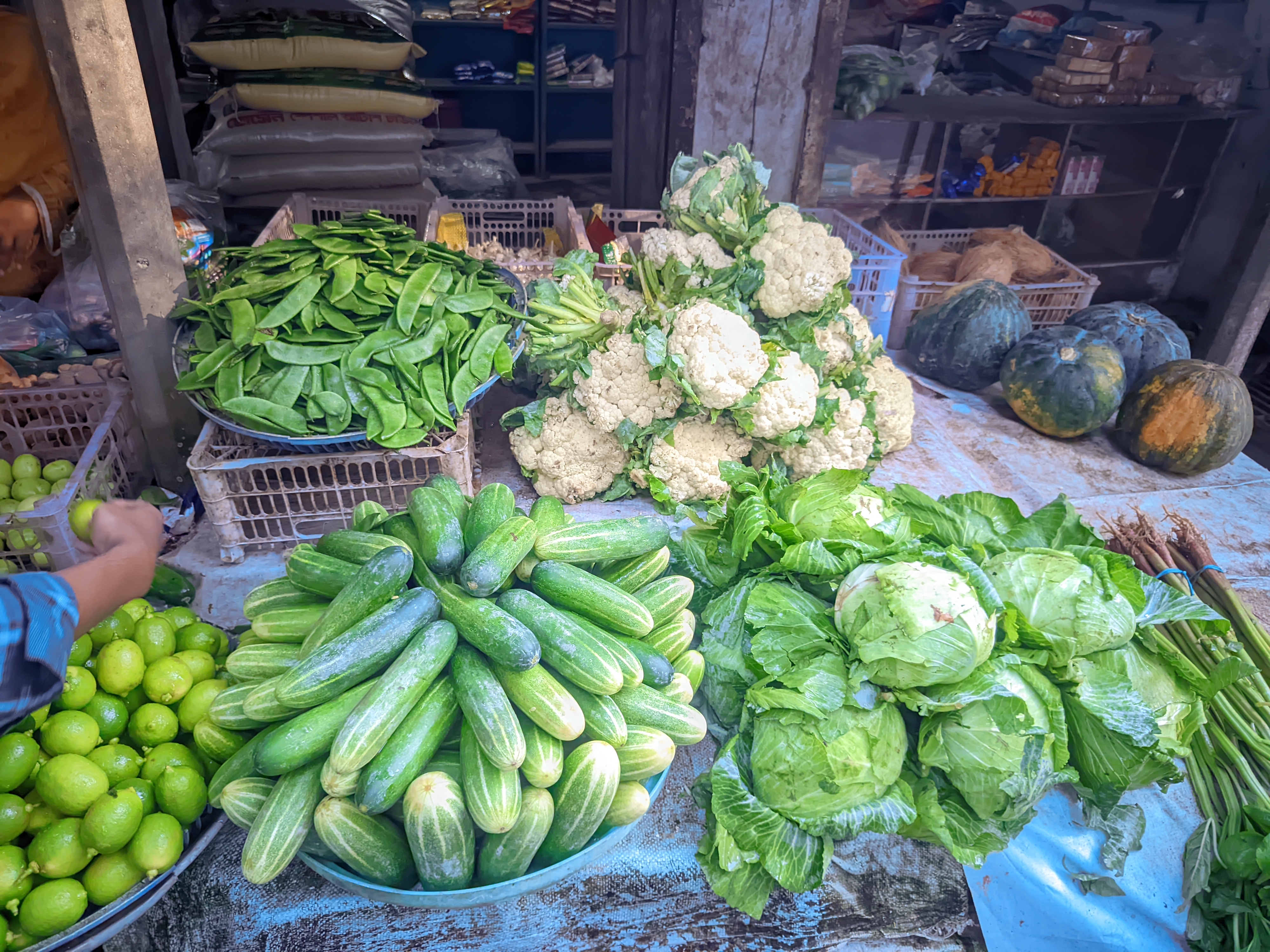 You can see many vegetables in this picture. There are cauliflower, beans, cucumber, sweet pumpkin, kale, data and some other vegetables. These are very common here. These are only available in winter. All of the vegetables you see in the picture are known as winter vegetables. These vegetables are currently in abundance in the vegetable market. The vegetables are stored very well in this store. The vegetables you see in the picture are in high demand.