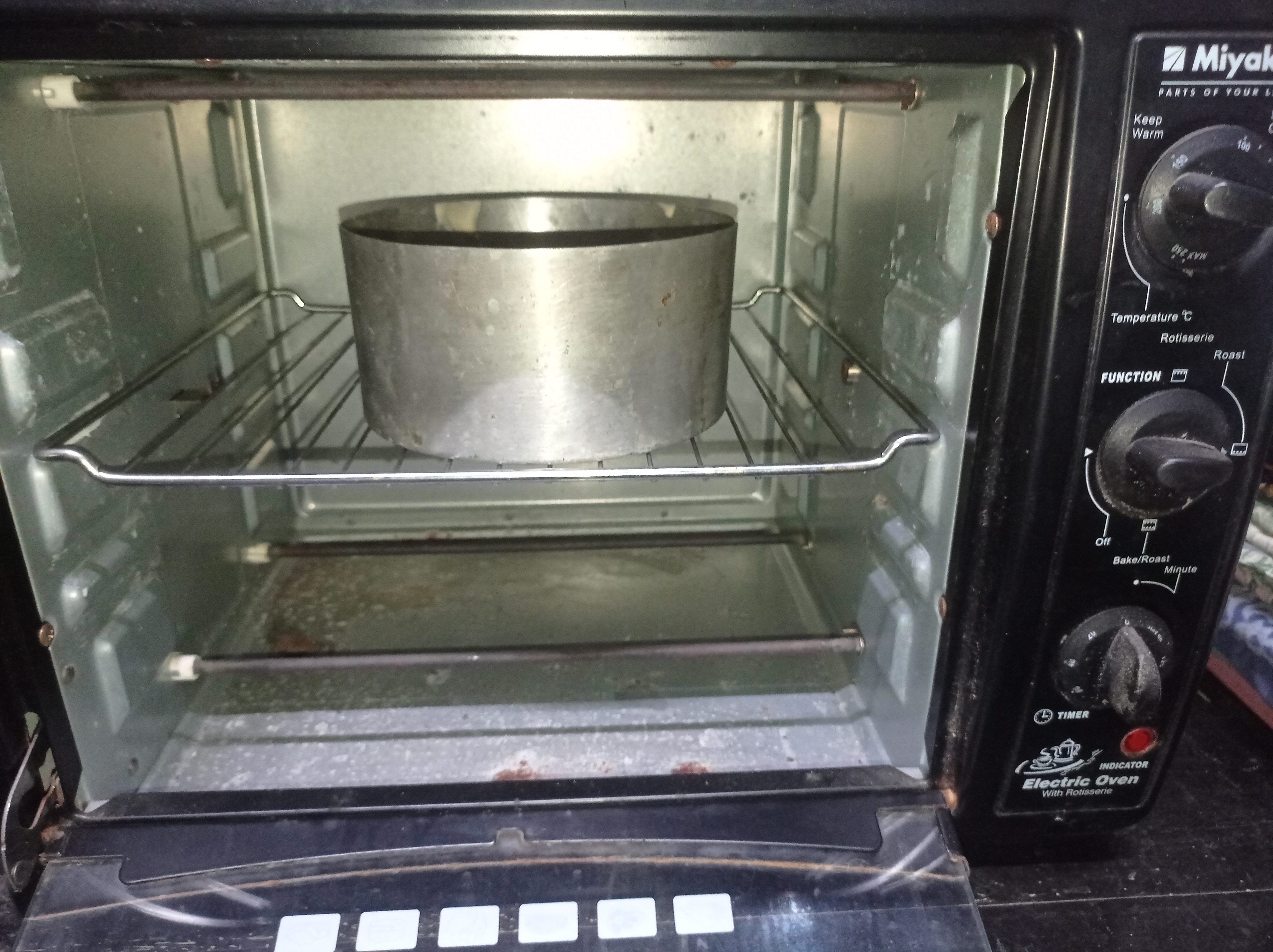 • সর্বশেষ বাটিকে ওভেন এর ভিতর দিয়ে দিব।১৬০° তে রেখে ২০ মিনিট সময় সেট করে তাপমাত্রা উভয় মানে উপরে এবং নিচে গরম হবে এভাবে সেট করে দিলেই কেক হয়ে যাবে।আমার কেকটা যেহেতু ২ ডিমের তাই কম ফুলেছে আপনারা চাইলে ৪/৬ টা ডিম দিয়েও বানাতে পারবেন। আমার কেকটা ভালোই হয়েছিল।আমার ছোট বোন বেশ মজা করে খেয়েছে।