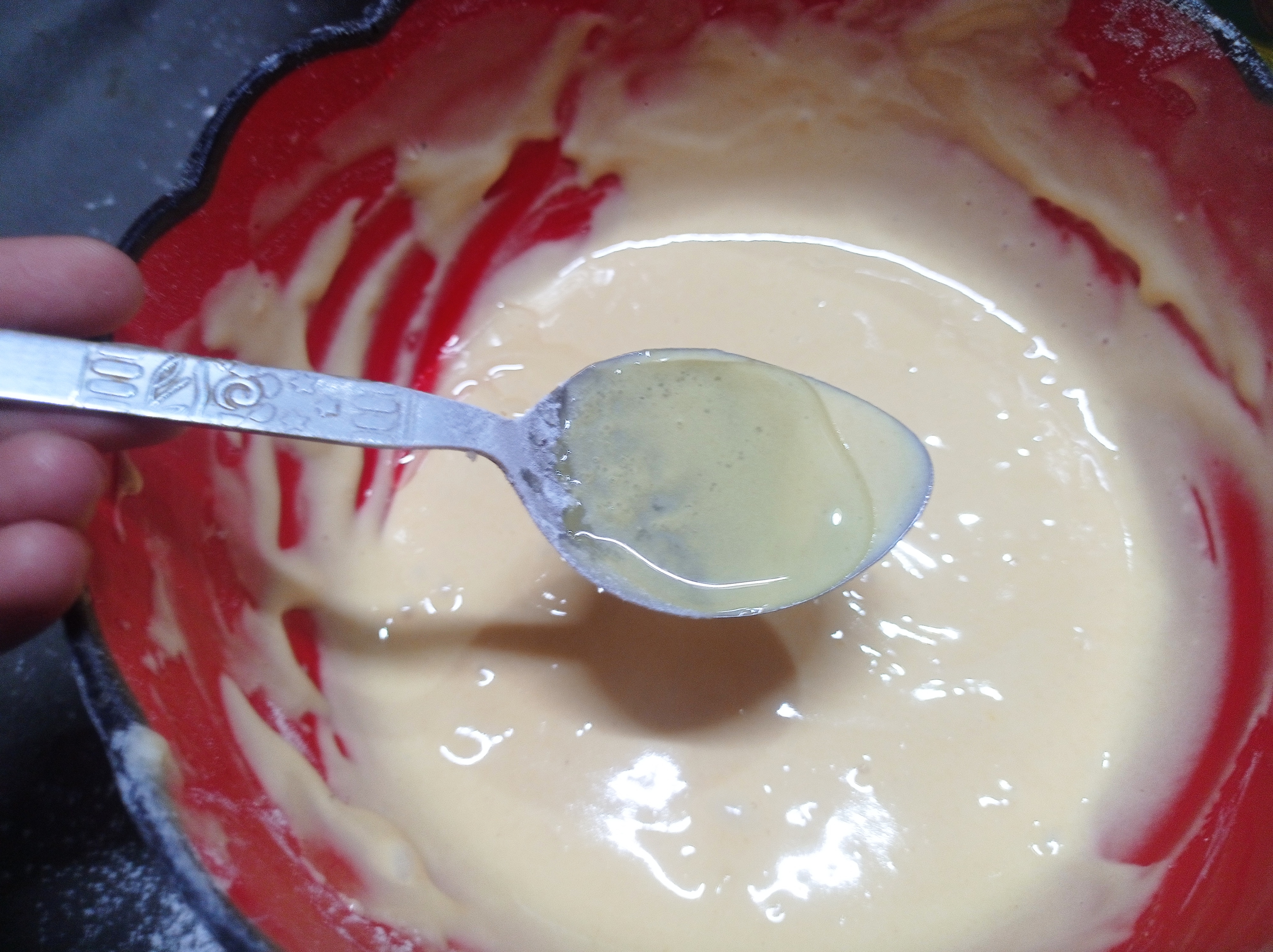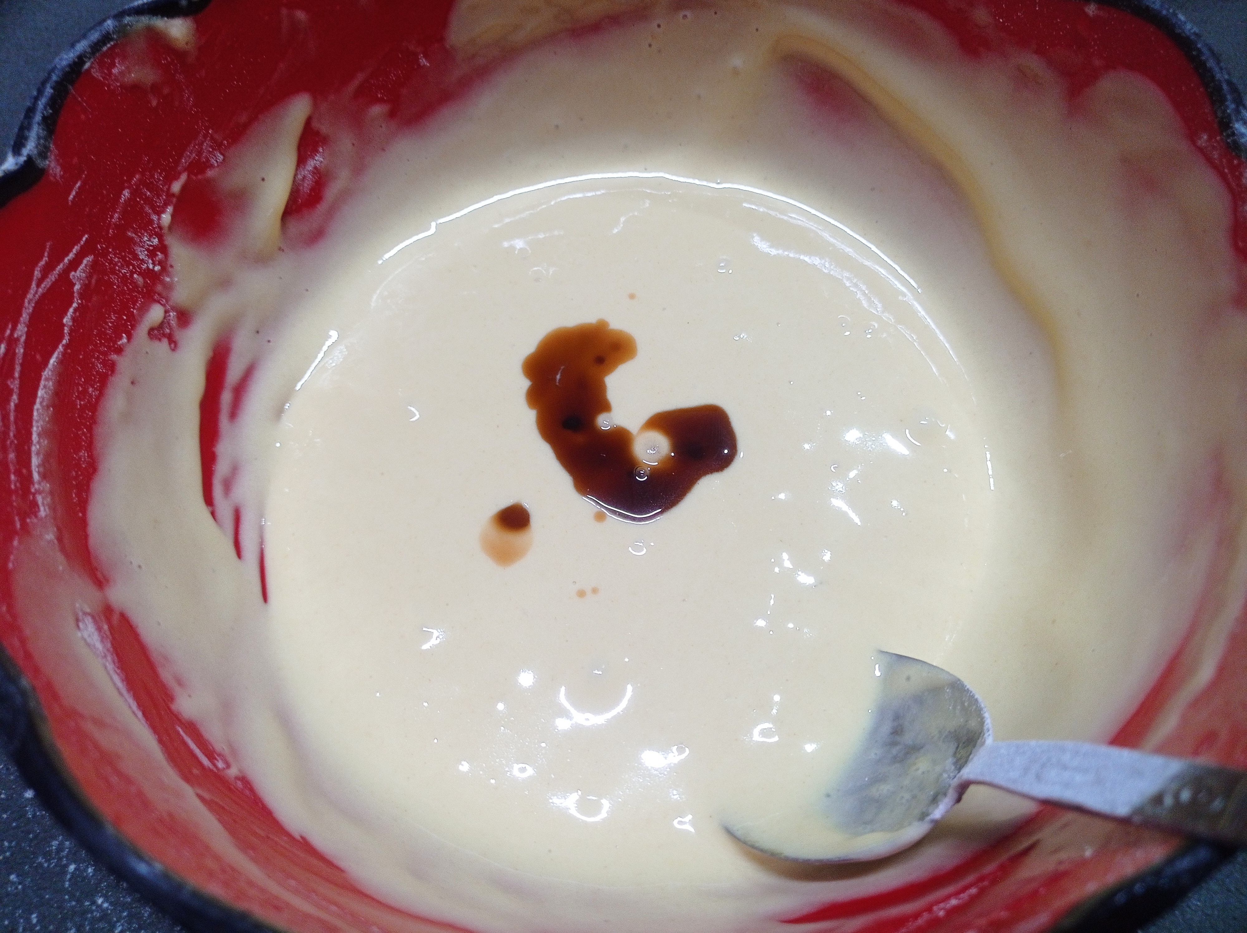 • এবার সামান্য তেল এবং ভ্যানিলা এসেন্স দিয়ে মিশ্রণ ভালো করে মিশিয়ে নিব।