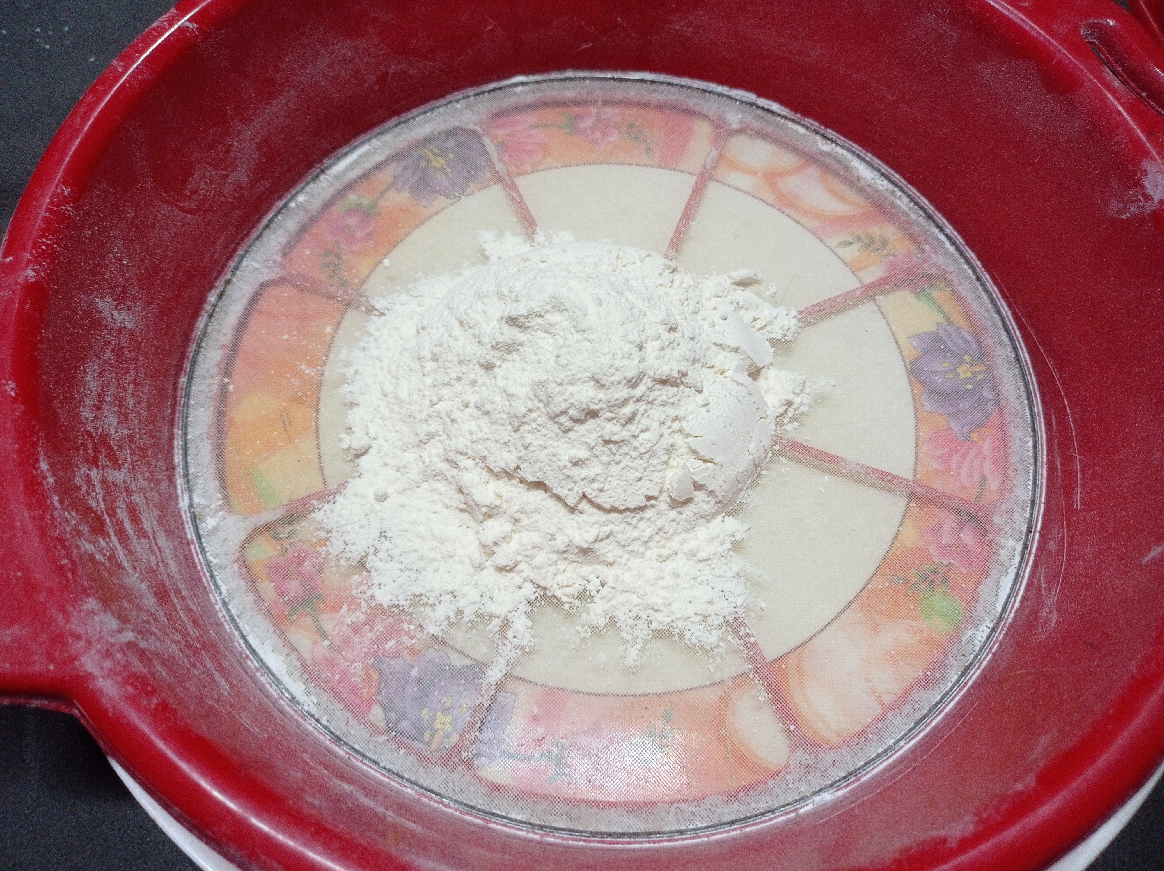 • ময়দাগুলো ভালোকরে ছাঁকনি দিয়ে ছেঁকে নিব।