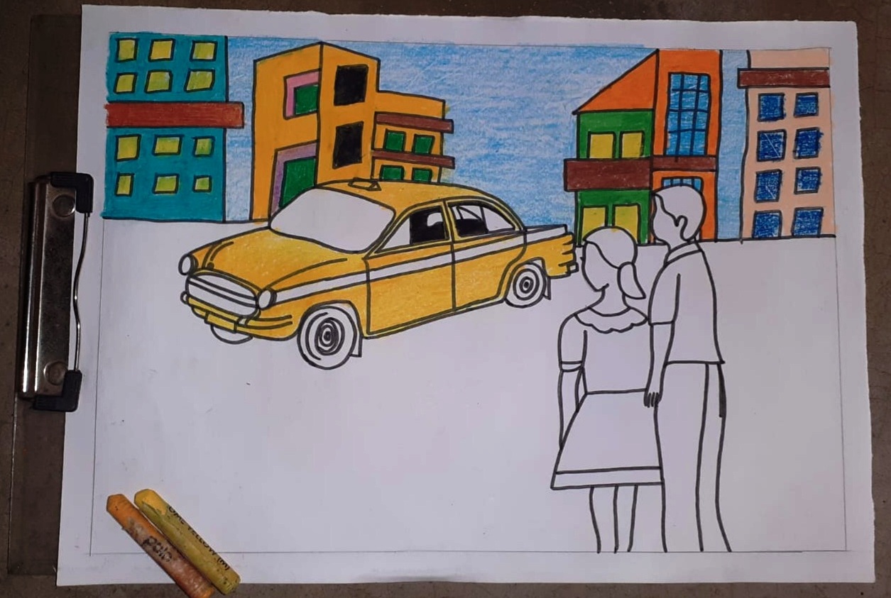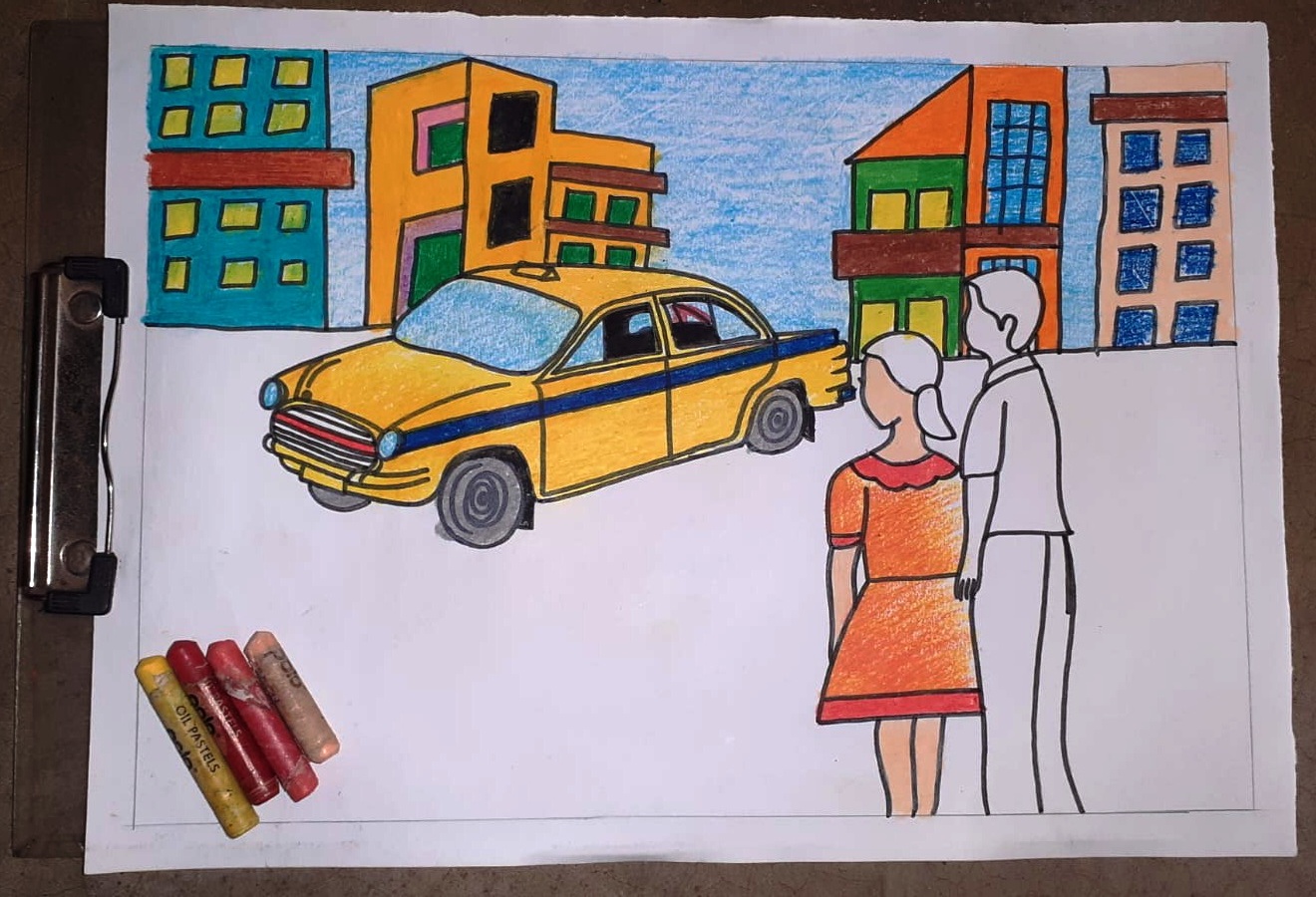 ❖দ্বিতীয় ধাপে একটা ট্যাক্সিকে পুরোপুরিভাবে অঙ্কন করে নিয়েছিলাম। আমাদের ভারতবর্ষের ট্যাক্সিগুলো যেমনটা হয় সেইরকমটা।