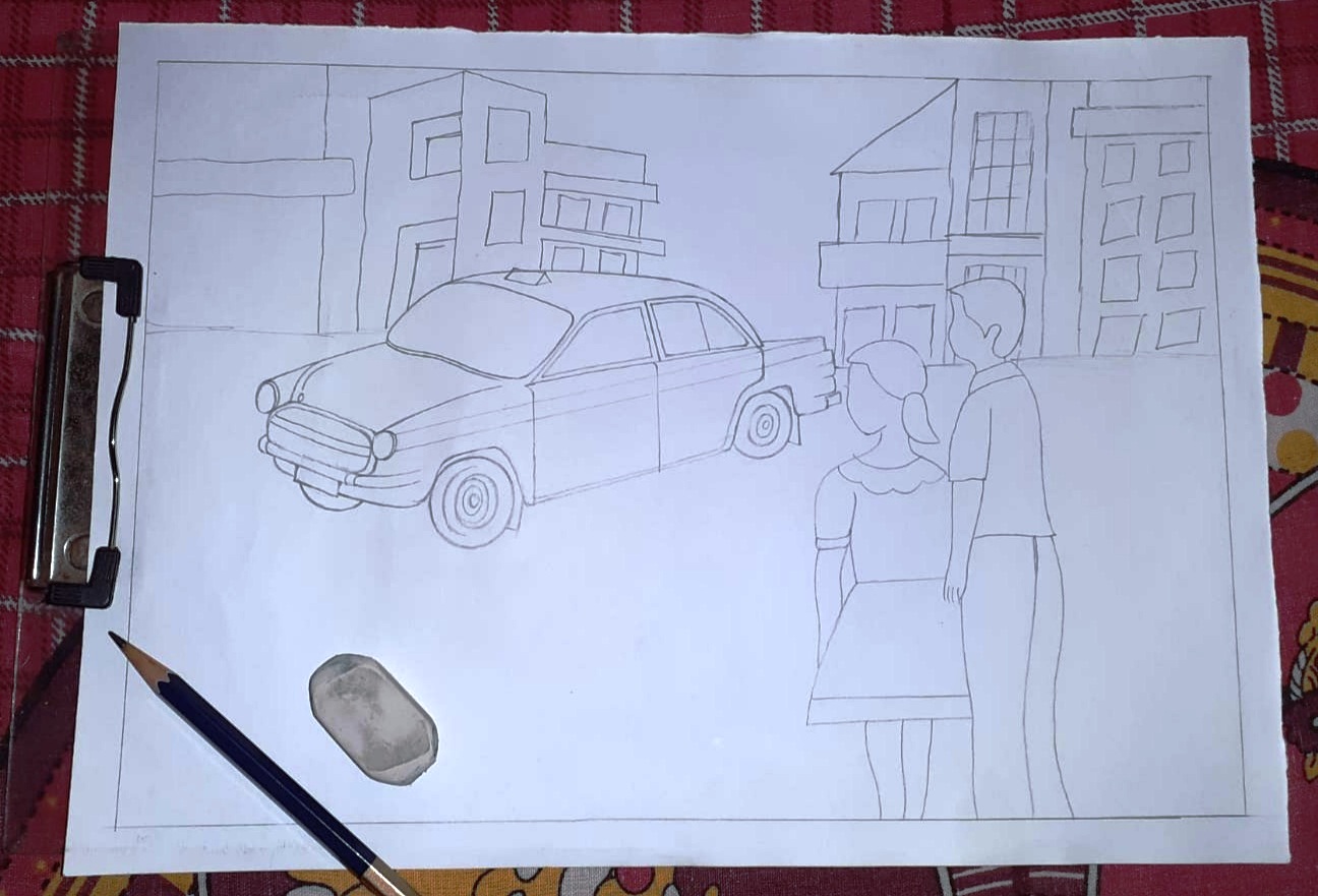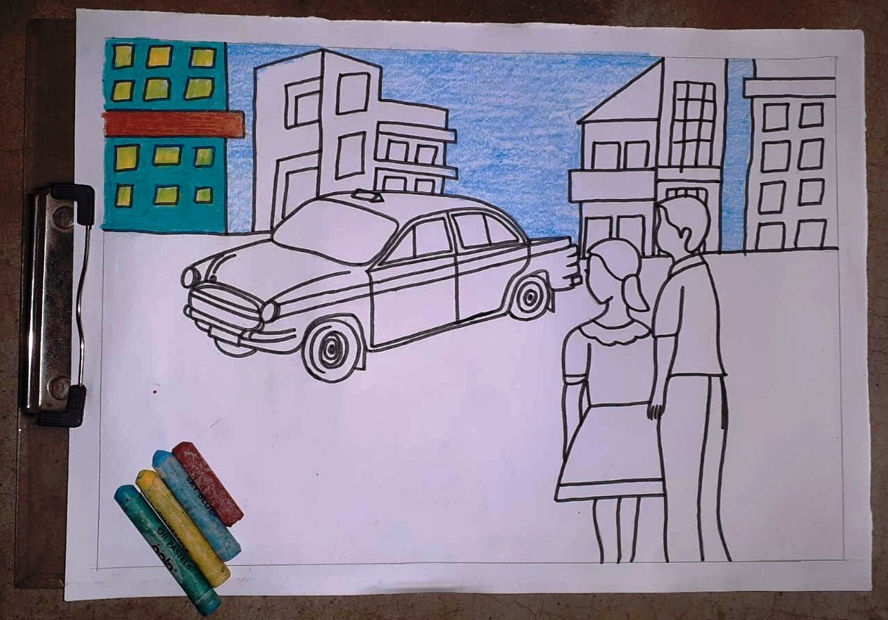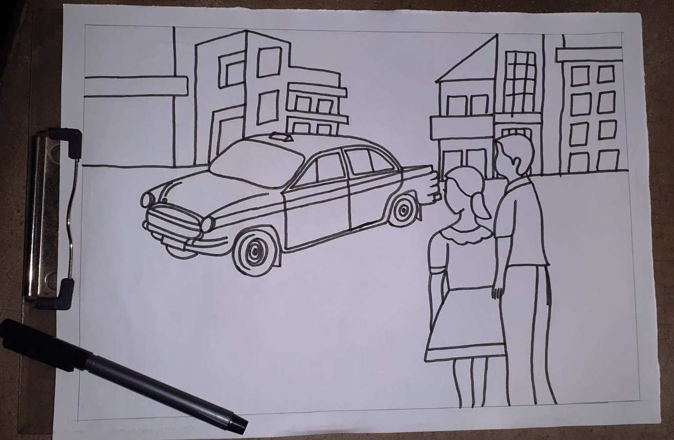আজকে আপনাদের সাথে একটা আর্ট শেয়ার করে নেবো। সপ্তাহখানিক বাদে আবার একটি নতুন আর্ট নিয়ে হাজির হয়েছি। আজকের আর্টটি একটু ভিন্ন ধরণের করেছি অর্থাৎ মনের চিন্তাধারায় উৎপন্ন নিজের মতো একটা চিত্র। আজকে যে চিত্রটি অঙ্কন করেছি সেটি হলো একজন মহিলা আর একজন লোক একসাথে এক জায়গায় দাঁড়িয়ে একটা ট্যাক্সিওয়ালাকে ডাকছে। এই অঙ্কনটা করার সময় আমি কিন্তু প্রথমে ভেবে করিনি যে দৃশ্যটা এইরকমভাবে ফুটে উঠবে। এখানে আসলে একটা স্টেপ অঙ্কন করার পর আরেকটি স্টেপগুলো এমনিই মনে চলে আসলো ব্যাস সেই অনুসারে দৃশ্যটা ফুটিয়ে তুলেছি যতদূর সম্ভব। মোটামুটি আমাদের বাস্তব জীবনের সাথে তাল মিলিয়ে সেইরকম একটা দৃশ্য আনার চেষ্টা করেছিলাম। আশা করি আজকের অঙ্কনটা আপনাদের কাছে ভালো লাগবে।