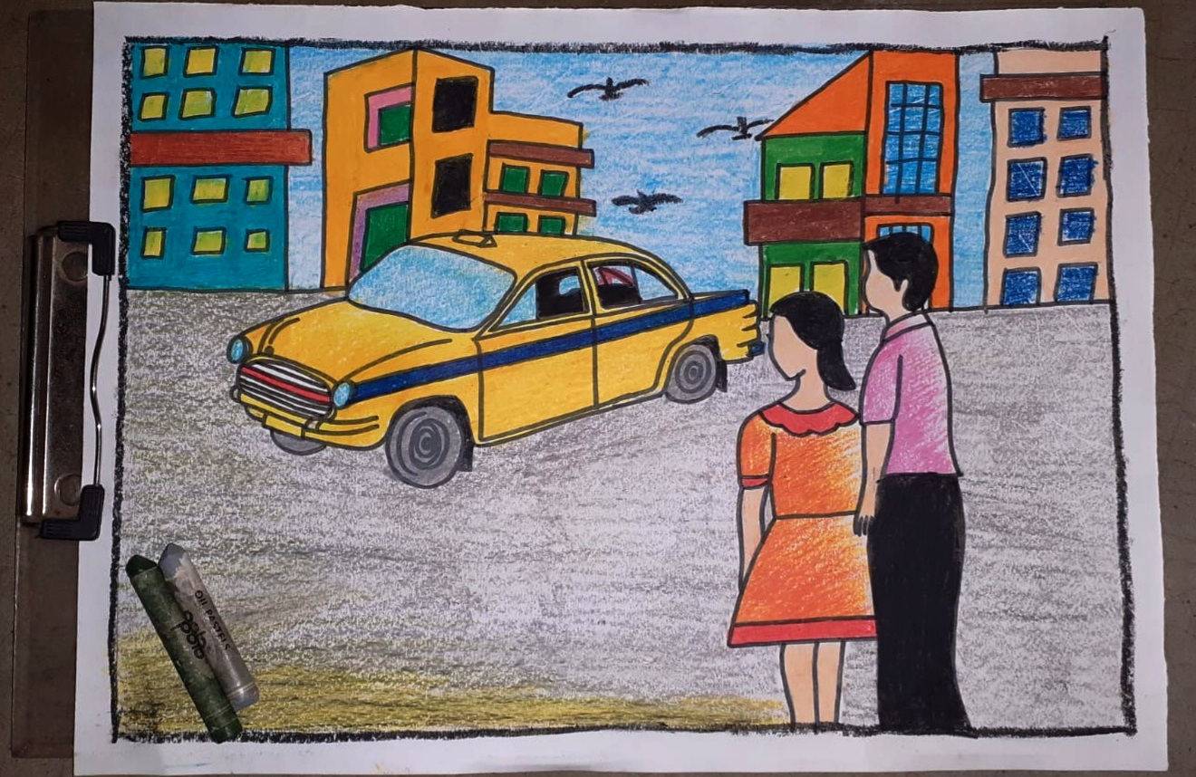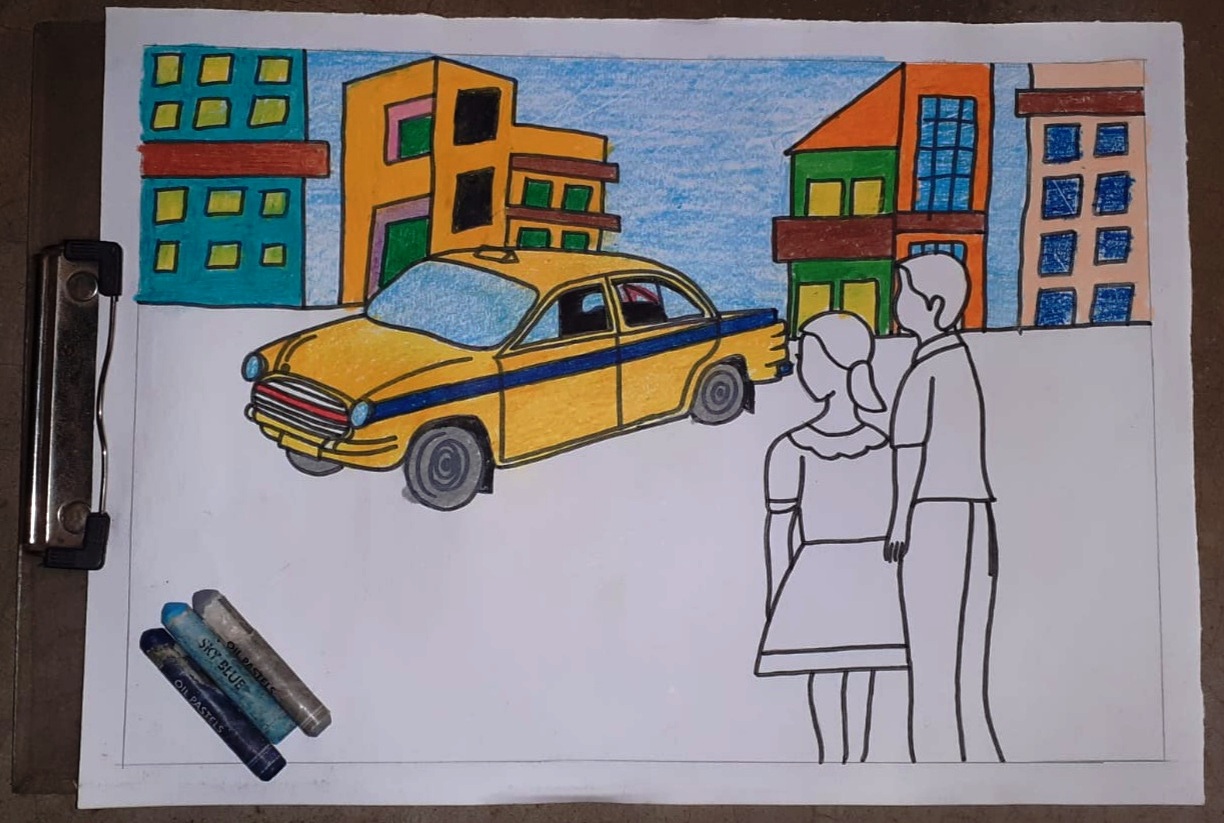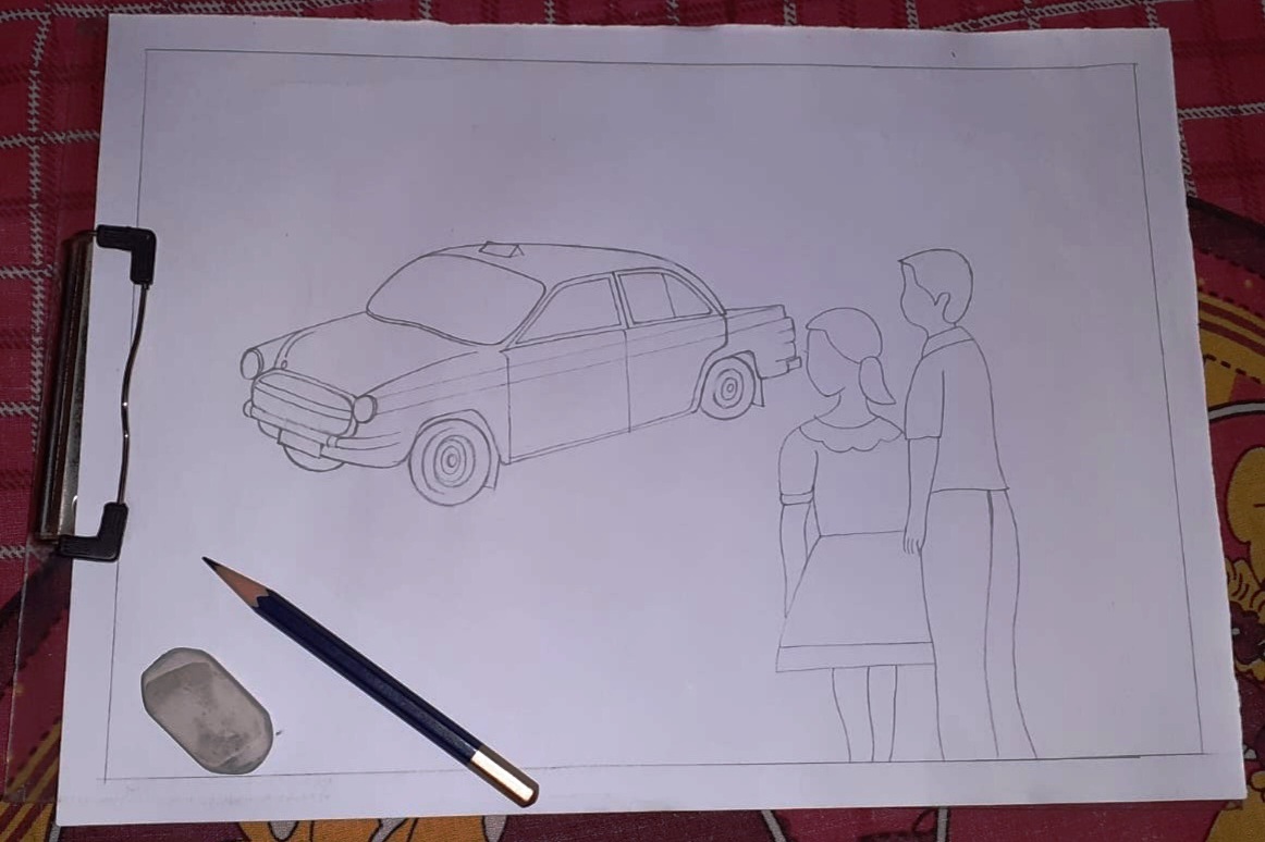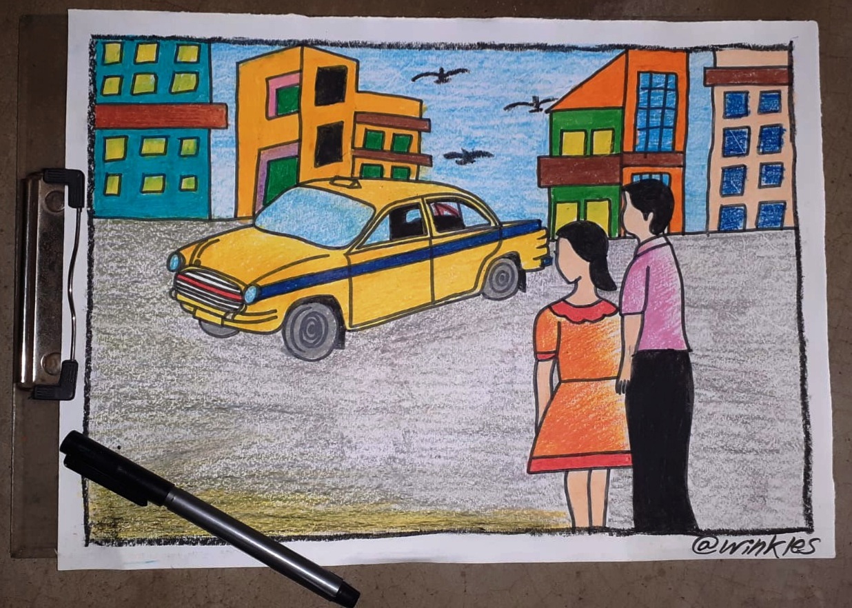 আজকে আপনাদের সাথে একটা আর্ট শেয়ার করে নেবো। সপ্তাহখানিক বাদে আবার একটি নতুন আর্ট নিয়ে হাজির হয়েছি। আজকের আর্টটি একটু ভিন্ন ধরণের করেছি অর্থাৎ মনের চিন্তাধারায় উৎপন্ন নিজের মতো একটা চিত্র। আজকে যে চিত্রটি অঙ্কন করেছি সেটি হলো একজন মহিলা আর একজন লোক একসাথে এক জায়গায় দাঁড়িয়ে একটা ট্যাক্সিওয়ালাকে ডাকছে। এই অঙ্কনটা করার সময় আমি কিন্তু প্রথমে ভেবে করিনি যে দৃশ্যটা এইরকমভাবে ফুটে উঠবে। এখানে আসলে একটা স্টেপ অঙ্কন করার পর আরেকটি স্টেপগুলো এমনিই মনে চলে আসলো ব্যাস সেই অনুসারে দৃশ্যটা ফুটিয়ে তুলেছি যতদূর সম্ভব। মোটামুটি আমাদের বাস্তব জীবনের সাথে তাল মিলিয়ে সেইরকম একটা দৃশ্য আনার চেষ্টা করেছিলাম। আশা করি আজকের অঙ্কনটা আপনাদের কাছে ভালো লাগবে।