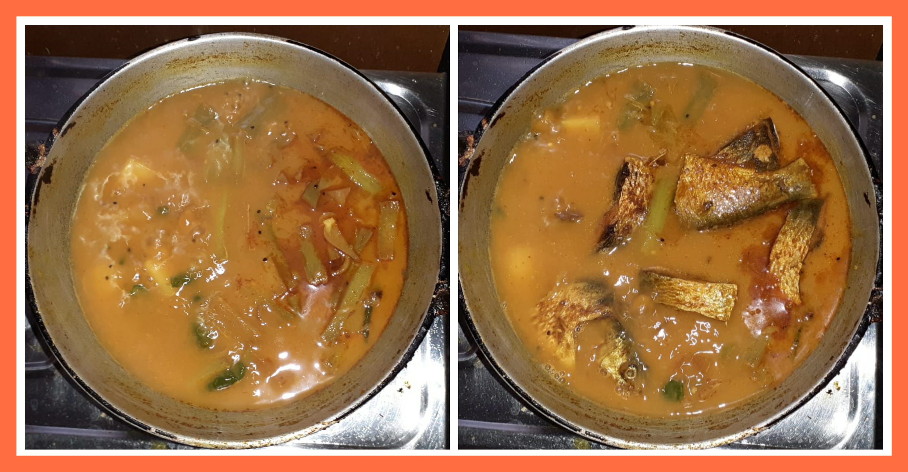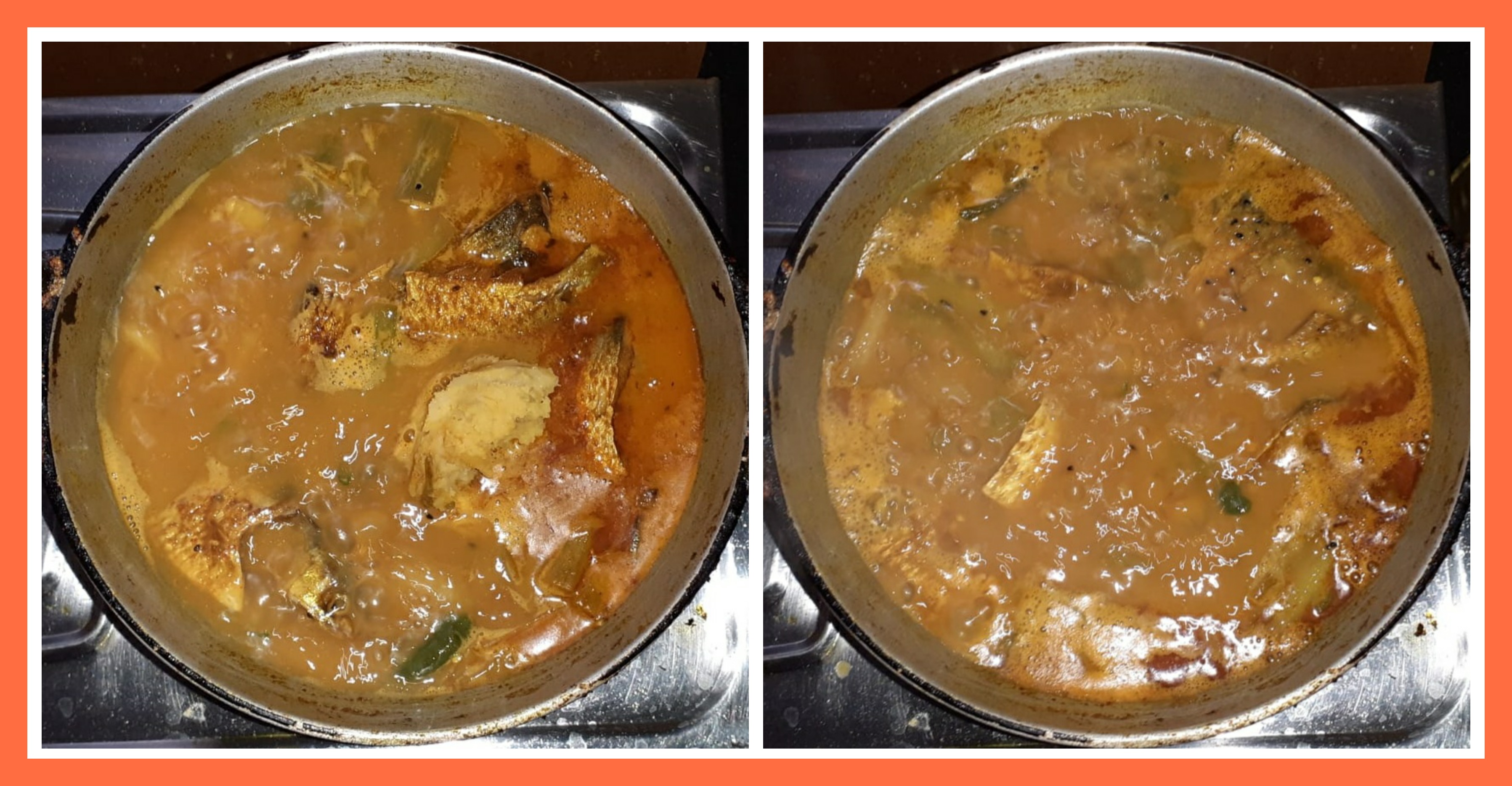 ➤মাছ দেওয়ার পরে তরকারির থেকে সিদ্ধ আলু কিছুটা তুলে নিয়ে গলিয়ে নিয়েছিলাম।