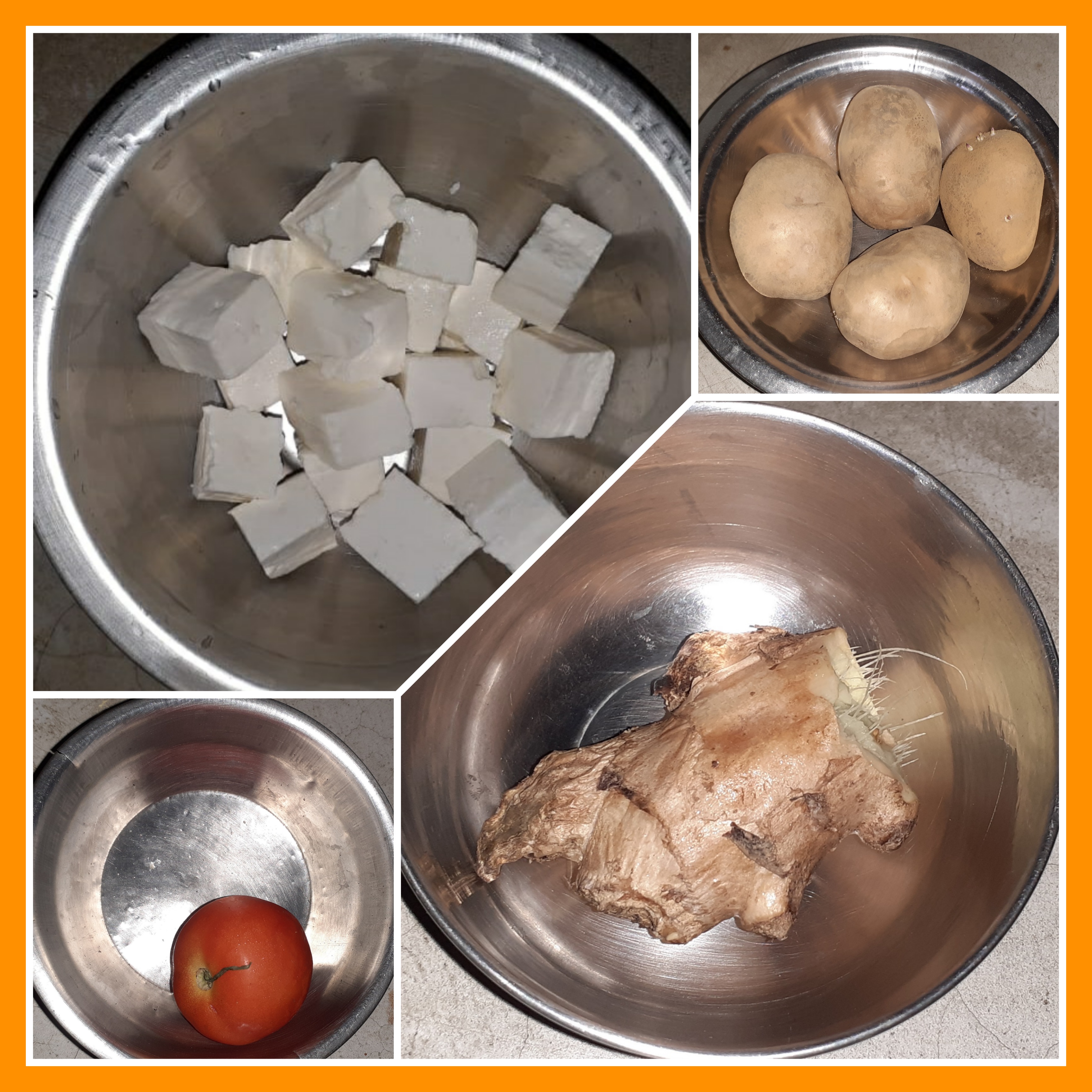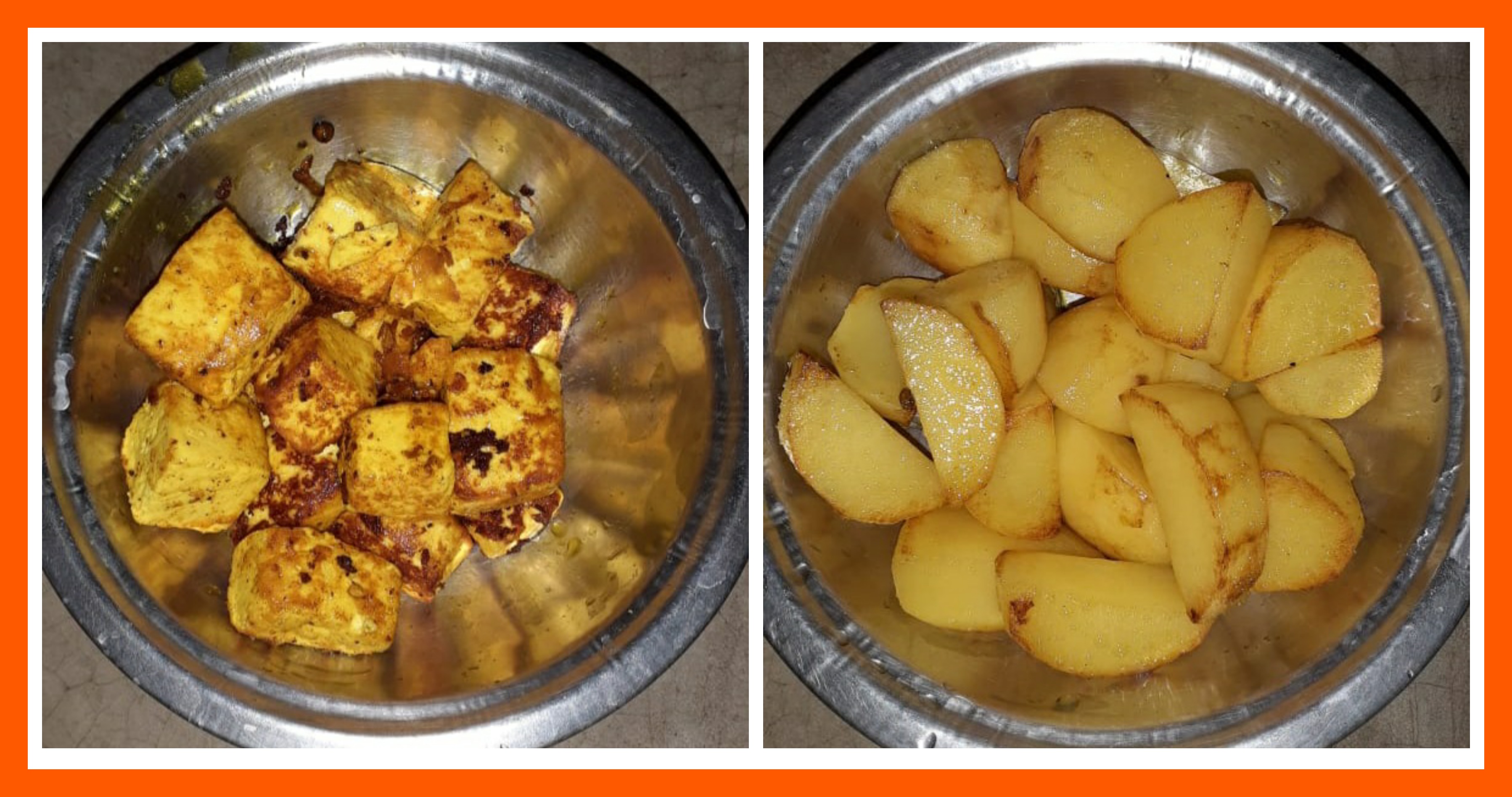 ❖পনির ভালো করে ভেজে নিয়েছিলাম। এরপর আলুগুলো লাল মতো করে ভেজে নিয়েছিলাম।